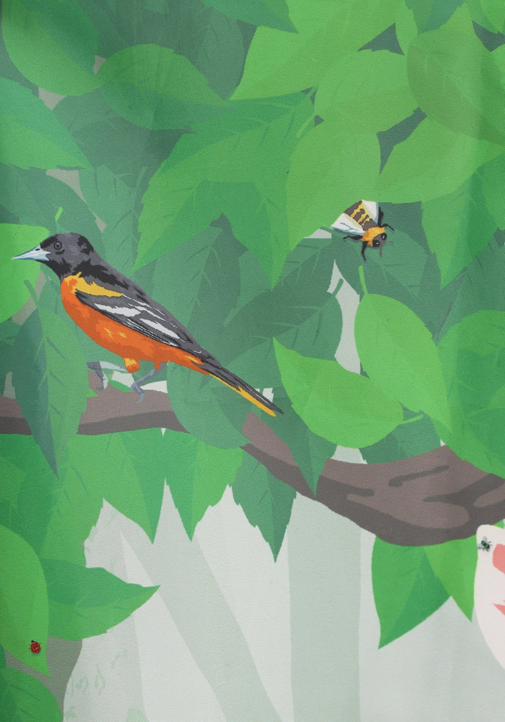 Let your nature goddess colors shine through with this Mother Nature costume. This Made by Us exclusive blossomed in the minds of our in-house design team and we’re happy to help you become the Gaia that we all need! Start with a full-length green gown that is printed to show tall trees, bright flowers, cuddly critters, and even 3D butterflies. One twirl in this dress will make nature feel alive at your feet! Rose-colored flowers highlight your neckline and our vine-like arm and leg bands bring your goddess might to bear. Crown your look with a headpiece that features nesting birds and butterflies and all that’s left is greeting your worshipers! Â