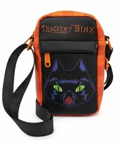 That Thackery Binx! Always up to mischief. Bring some of that mischief wherever you go with this Women’s Hocus Pocus Thackery Binx Crossbody Wallet. Subtly striped orange borders the outside, and a deep black background is the base for a full-color graphic of Binx himself (in cat form). His name is scrawled across the top in matching orange. There are two pockets and a black shoulder strap that’s fully adjustable. Zippers keep your valuables safe from thieves and nosy witches. Fill it with your most important spell ingredients and bring them along to the creepy cabin the woods where three strange sisters live.