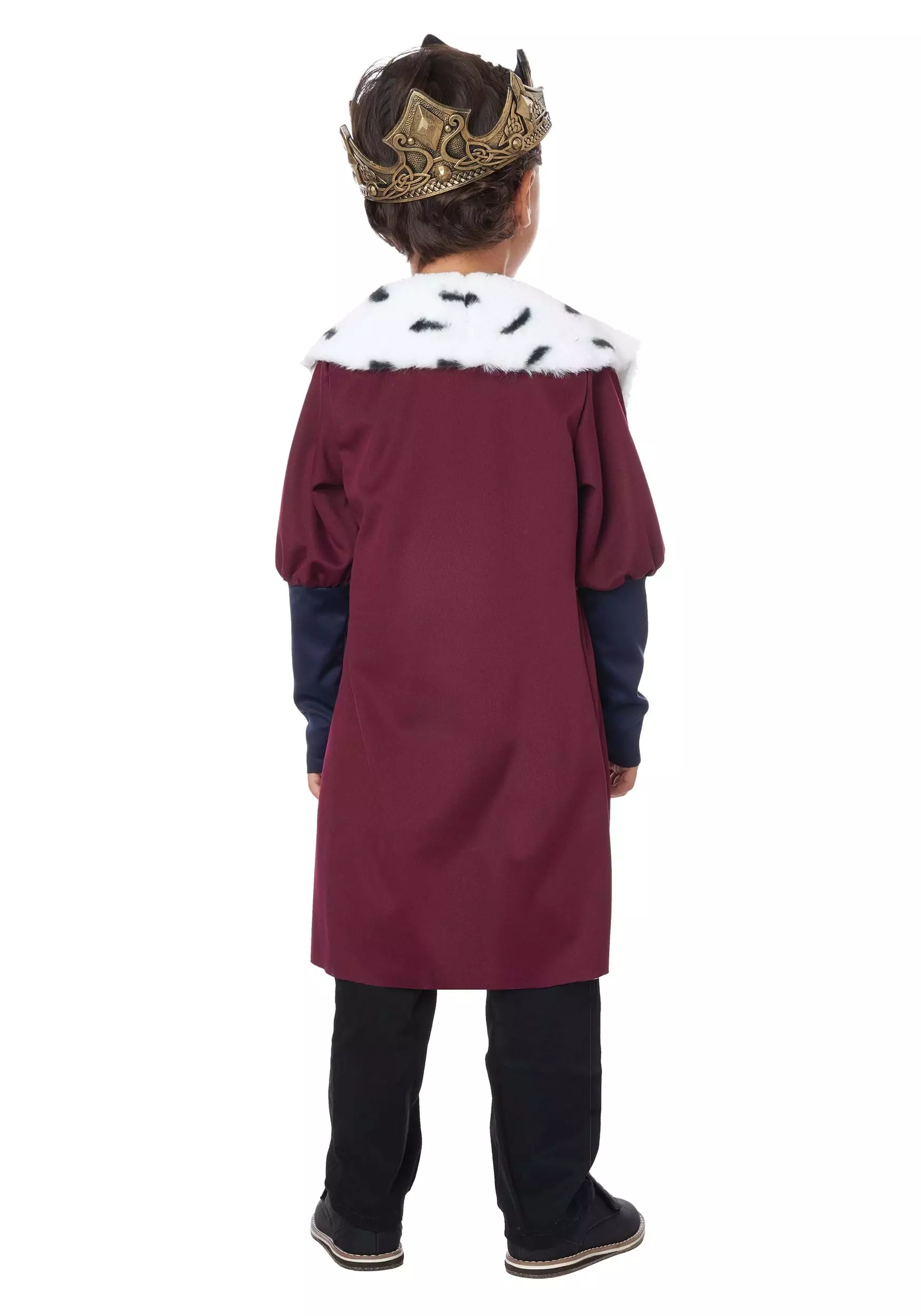 When you’re born into royalty, you have to dress the part! This Little King Costume for Toddlers positively drips majesty, overawing even the most upstart of parents. A finely-woven tunic dyed with the most sumptuous of indigo plants is decorated with an elegant stripe of red and gold-patterned brocade and cinched with a wide black band. Atop it is an attached coat of rich maroon, embellished with short poufy sleeves and a collar made with softest (faux) ermine. It’s an outfit fit for a king!Â