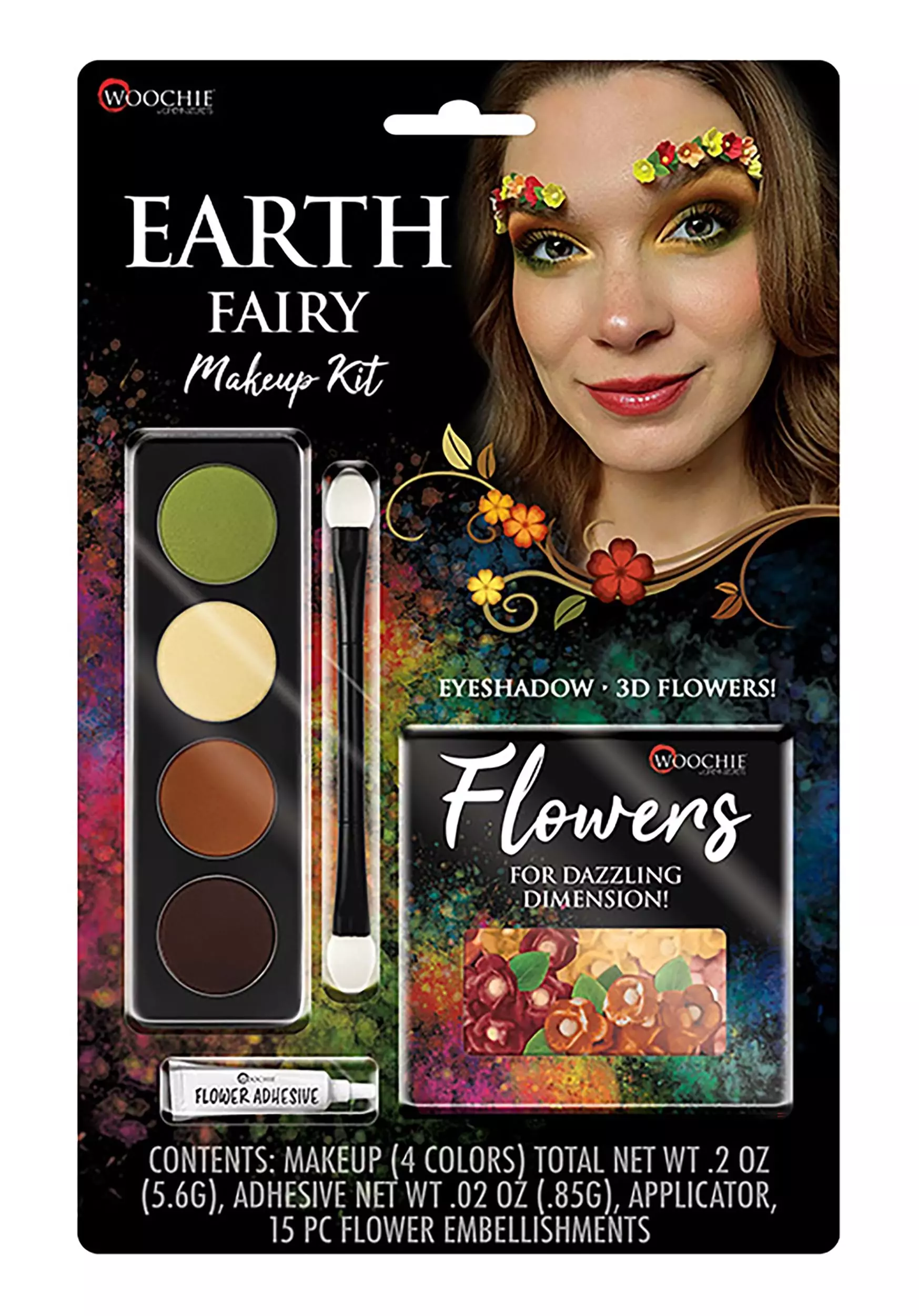 Mother Nature would surely approve of this Earth Fairy Eyeshadow Makeup Kit! The plastic palette comes stocked with matte shades of green, cream, warm brown, and dark brown. The soft-tipped plastic applicator makes it simple to create your own unique design. The set includes matching 3D faux flowers as well as makeup-grade adhesive.Â