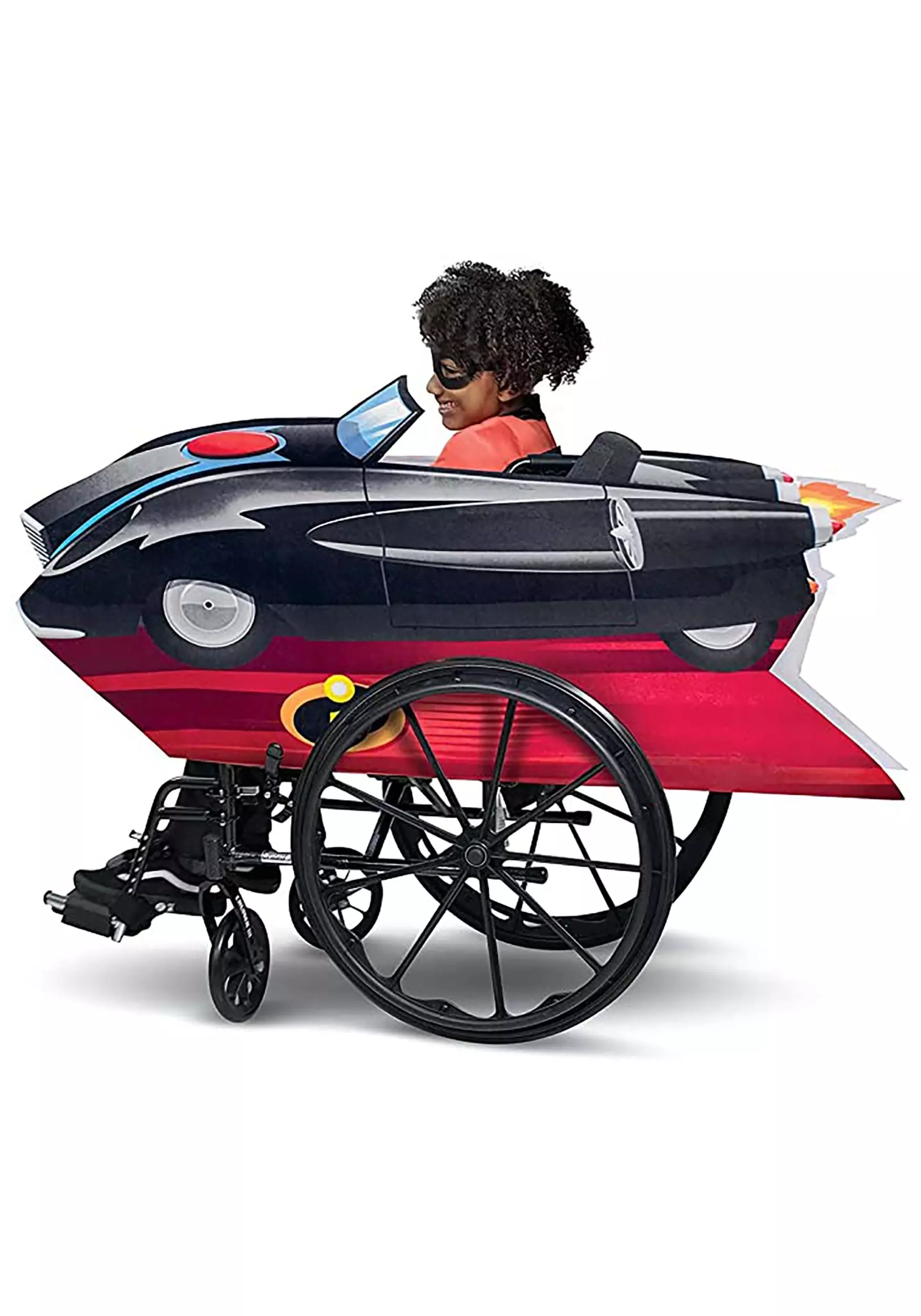 Now, you can make your child’s Halloween dreams come true by giving them a turn at the wheel of The Incredible, right from their wheelchair! This Incredibles Adaptable Wheelchair Cover is a neat replica of Bob Parr’s pride and joy vehicle, only without a few bells and whistles (this one doesn’t have the enemy-tracking GPS or an ejectable passenger seat, for instance). Trust us, behind the wheel of their new supercar, your own little hero will look every bit the part of their incredible Halloween costume this year!
