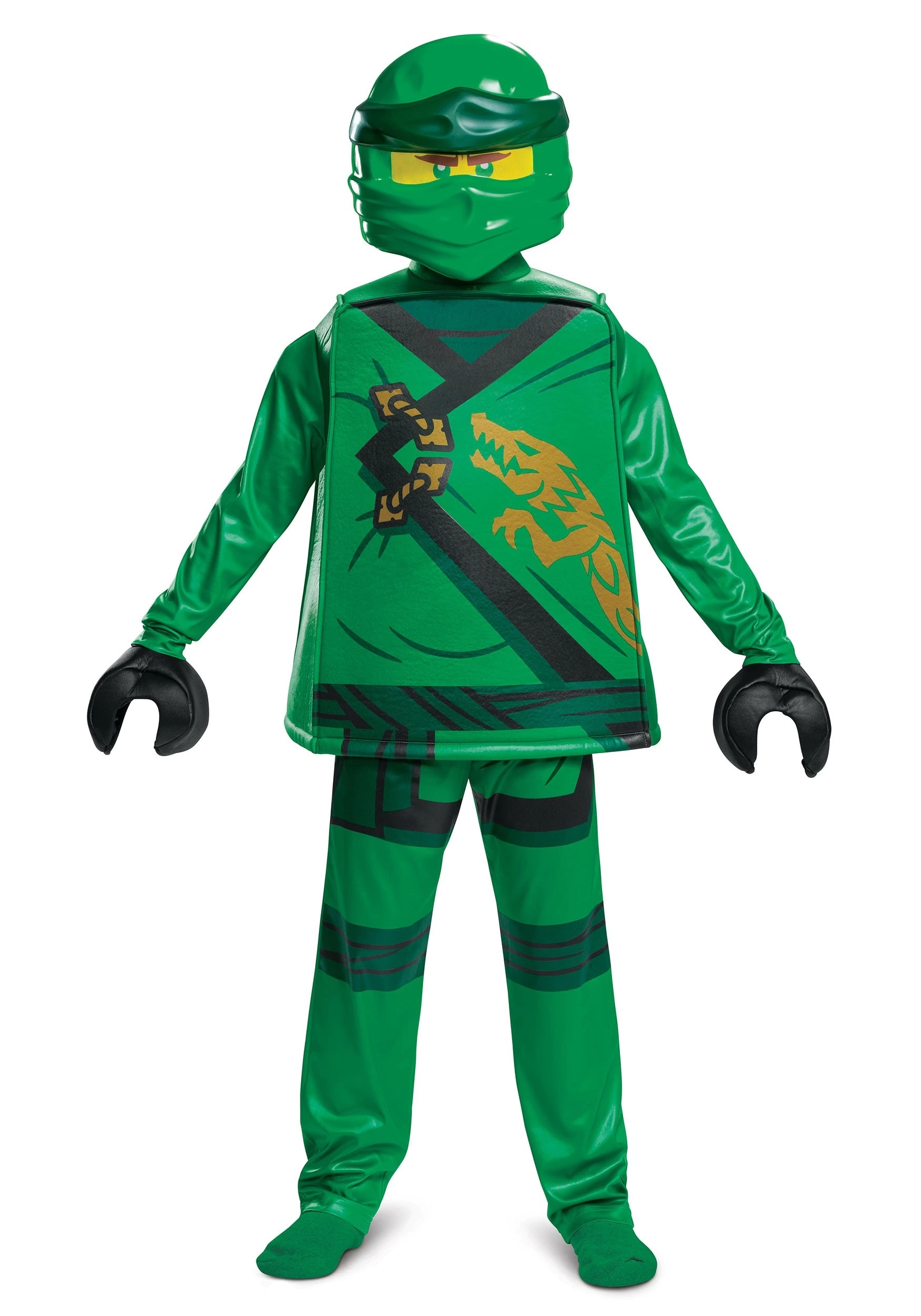 Get ready for l-loads of fun with this Child’s Lego Ninjago Lloyd Legacy Deluxe Costume. The costume looks just like Lloyd’s ninja outfit from the Ninjango movie! It’s 100 percent polyester and includes a foam overlay to keep the Lego-like shape, a printed green top with foil dragon graphics, green pants, a Lloyd mask and a pair of black Lego minifigure hands.