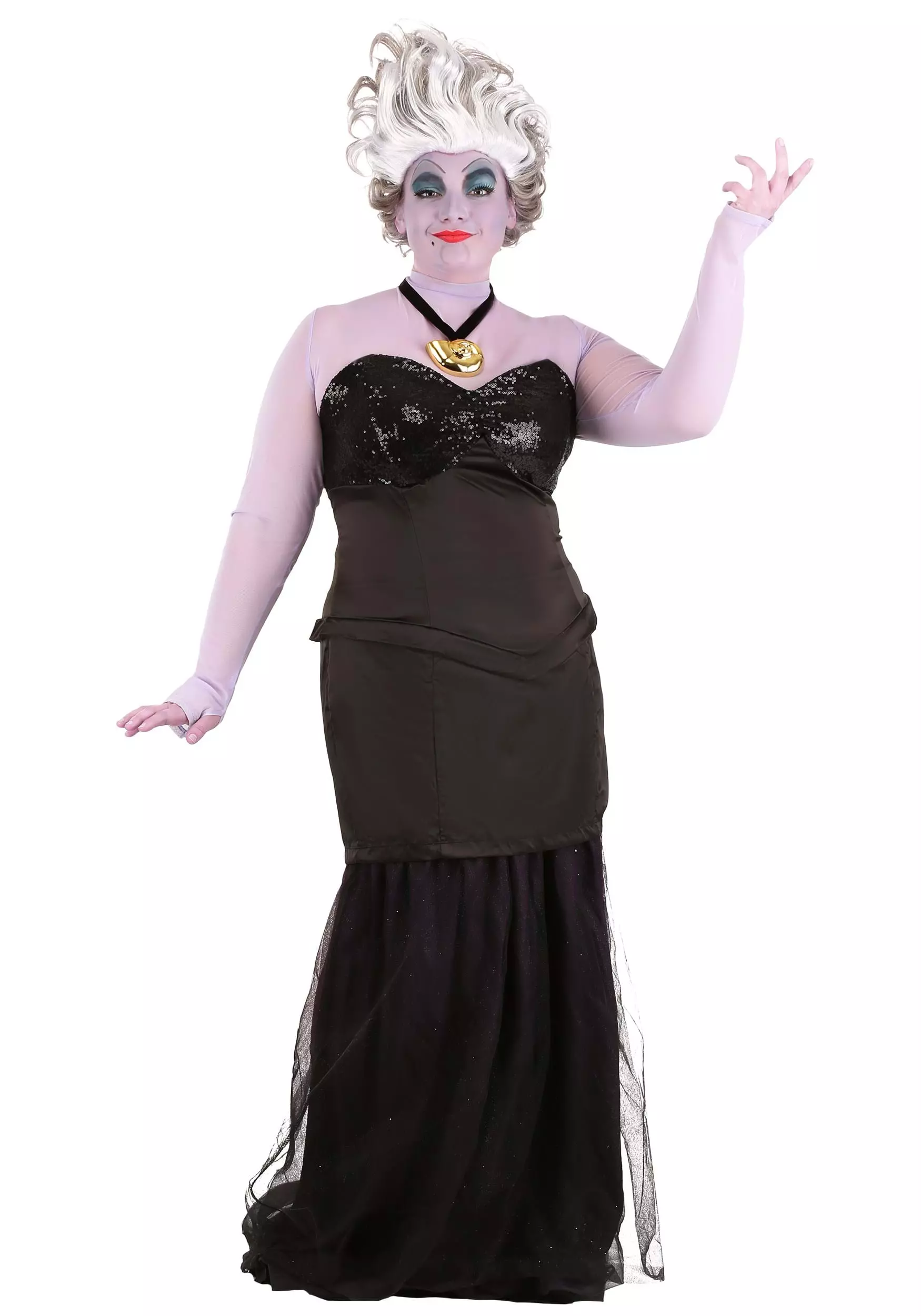 Get your singing voice ready and pick your favorite potions, because it is time for you to swim into this officially licensed Little Mermaid Ursula Prestige Costume! Whether you want to help out a handful of poor, unfortunate souls or show the world that you’ve got what it takes to conquer the ocean, a single night in our exclusive Ursula look will have you feeling part of every world. The costume includes a long-sleeved mesh shirt that gives you a lovely lavender look. The dress features a sequin-trimmed satin bodice with a black skirt that hugs your hips and has overlays of knit mesh & glittery tulle. Bring the wonder of the waves when you inflate the wrap-around overskirt to gain the writhing tentacles of your favorite witch! With your look complete, all you need next is a king to dethrone! (Of course, you can pick up our Sea Witch Wig to really match your brand new crown, too.)Â