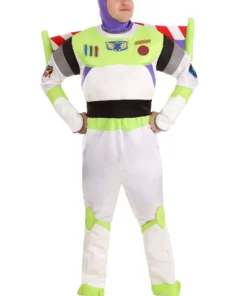 You will be proud of your spacesuit just like the flying action figure Buzz Lightyear. The deluxe costume features a detailed jumpsuit that zips up the back. The jumpsuit is made of satin textured material and has a padded chest, while the longs sleeves are silver and black around the shoulders the forearms features an attached shiny vinyl pad. The back of the suit has Hook and Loop fastener to attach the included foam wings. The vinyl boot covers bright green and shiny white and secure under the foot with an elastic strap. The costume also includes the purple hood. Complete this look with the additional white costume gloves or the white costume boots from our related accessories. You will go to infinity and beyond in this futuristic costume for Halloween.
