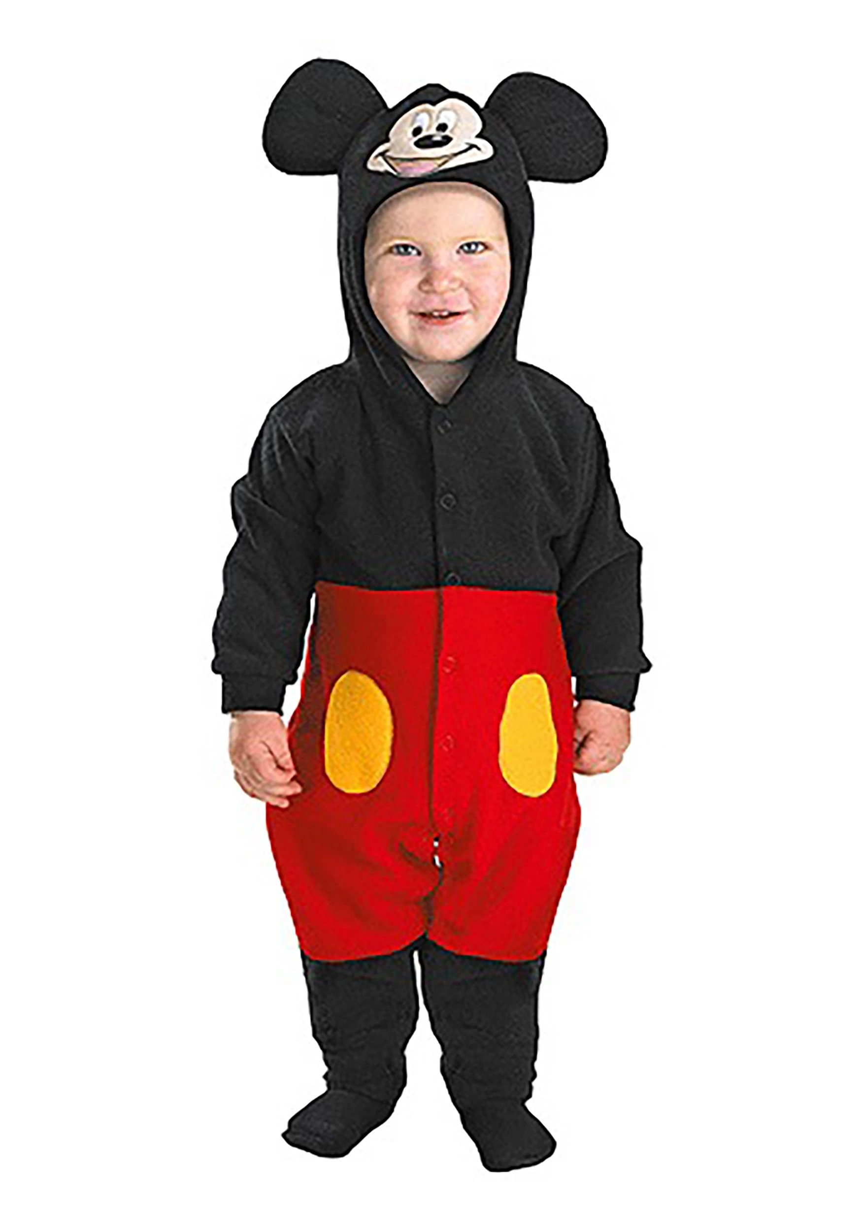 This precious, one piece jumpsuit is made of cozy flannel, with snaps along the front and around the inseam for convenience. It gives your little one the look of wearing Mickey’s famous red shorts, complete with yellow button details, and the hood is embroidered with Mickey’s smiling image, and topped with big foam ears. Add any accessories to give them a unique style for Halloween, or have fun with their favorite mouse’s classic look!