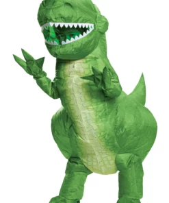If your first thought about what to do with tiny deflated dinosaurs is to blow them back up, well, you’re our kind of people! That’s why this officially licensed Inflatable Rex costume is perfect for that Tyrannosaurus-Kiddo that you have in your life. This jumpsuit looks just like our favorite Toy Story dinosaur, Rex, from his scaley belly and cute little claws to his giant toothy smile. Your kiddo can look right through the mesh screen over Rex’s mouth and the flip of a switch on the built-in fan will inflate this costume right into the proper dimensions!Â