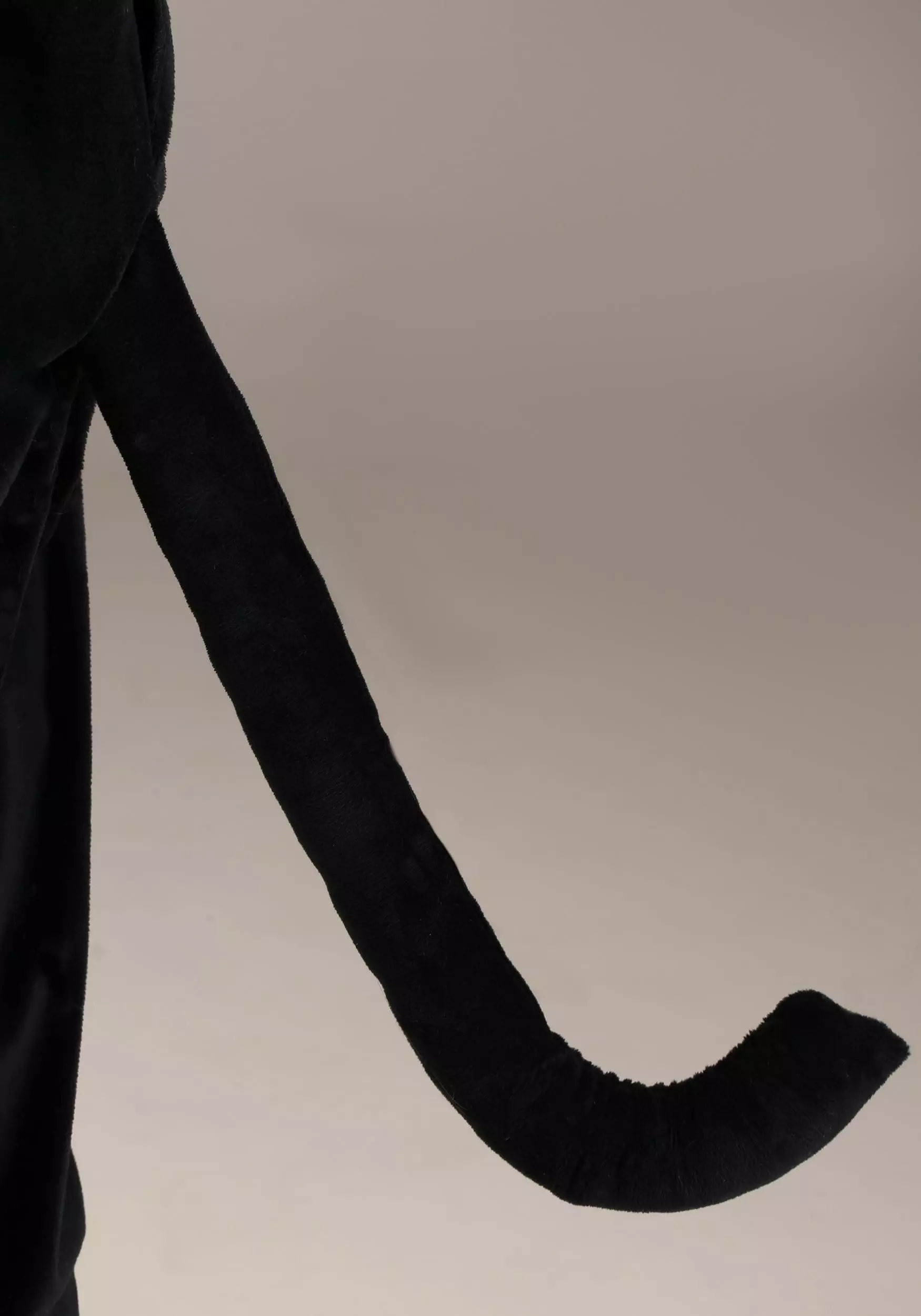 This storybook-inspired costume is a black jumpsuit with a long cat tail. A furry chest piece in white is topped with the cat’s signature big red bow, and the red and white striped, oversized top hat is also part of the Cat’s iconic look. Little gloves complete the transformation!Â