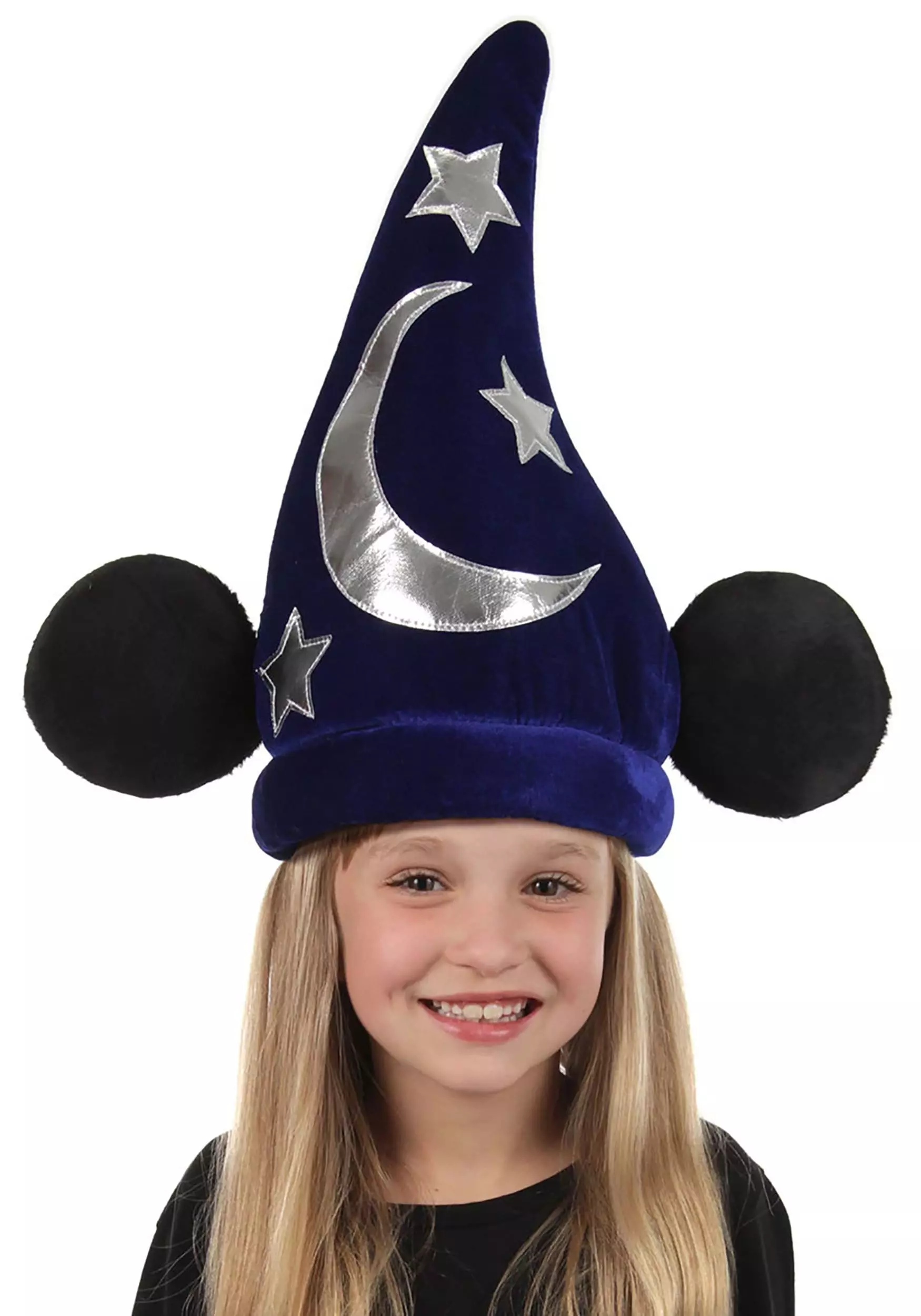 This plush Mickey Mouse wizard hat has everything you could want in a beginner wizard’s first hat. It has a blue exterior with plenty of silver stars and moon appliques, just like Mickey in Fantasia. It also features attached foam ears and a size adjuster inside the hat. Just add it to your wizard costume and you’ll be ready to learn the responsibilities of being a sorcerer’s apprentice. Just make sure you keep your magic spells away from any brooms you have in the house. It’s easy to turn into a themed group costume, too!