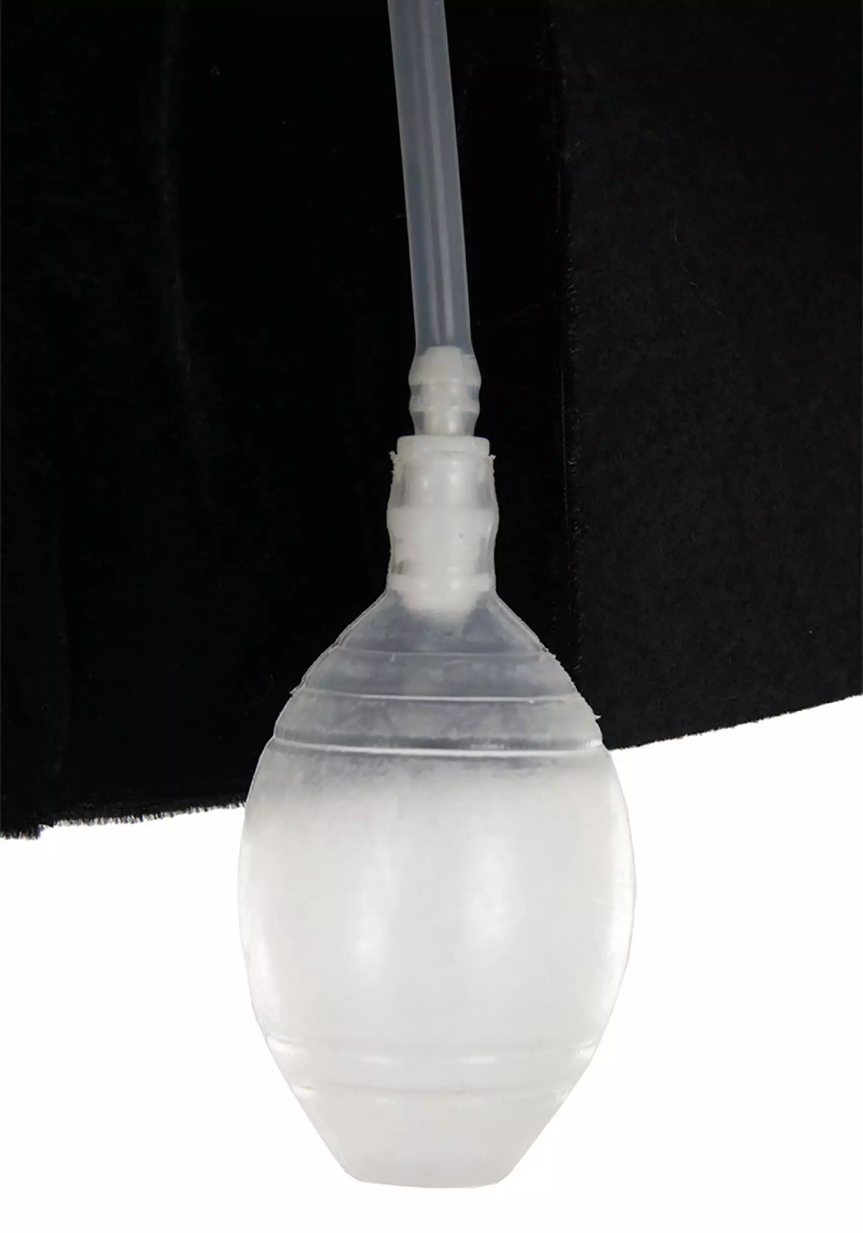 - Neck drape has pocket for water bulb; tubing runs from bulb to character mouth