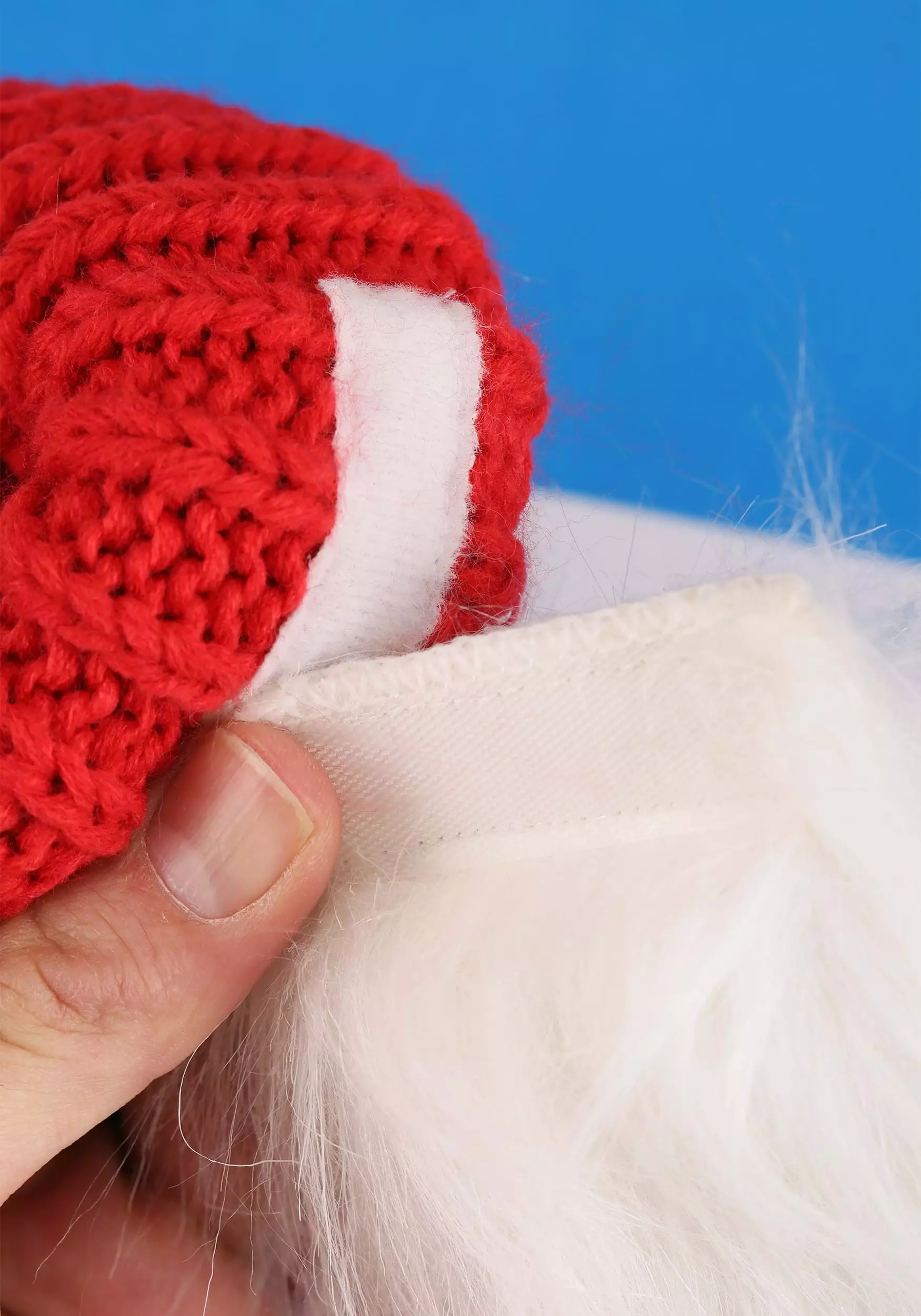 - 2 tufts of faux fur “hair” attach to inside of hat cuff w/ hook & loop fastener