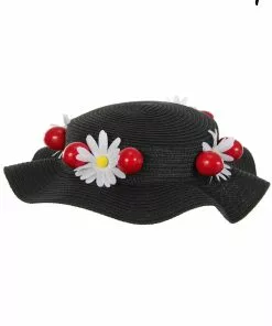 It is time to channel the true might of Mary Poppins by wearing her iconic hat! Now, we’re not sure that this black hat is where her power comes from or if it is just part of her exquisite style. But, this hat is designed to look like it is crafted of braided straw while it’s actually quite a bit more resilient. Decorated with daisies and cherries, this officially licensed accessory brings a little pop to your Poppins look!Â
