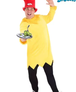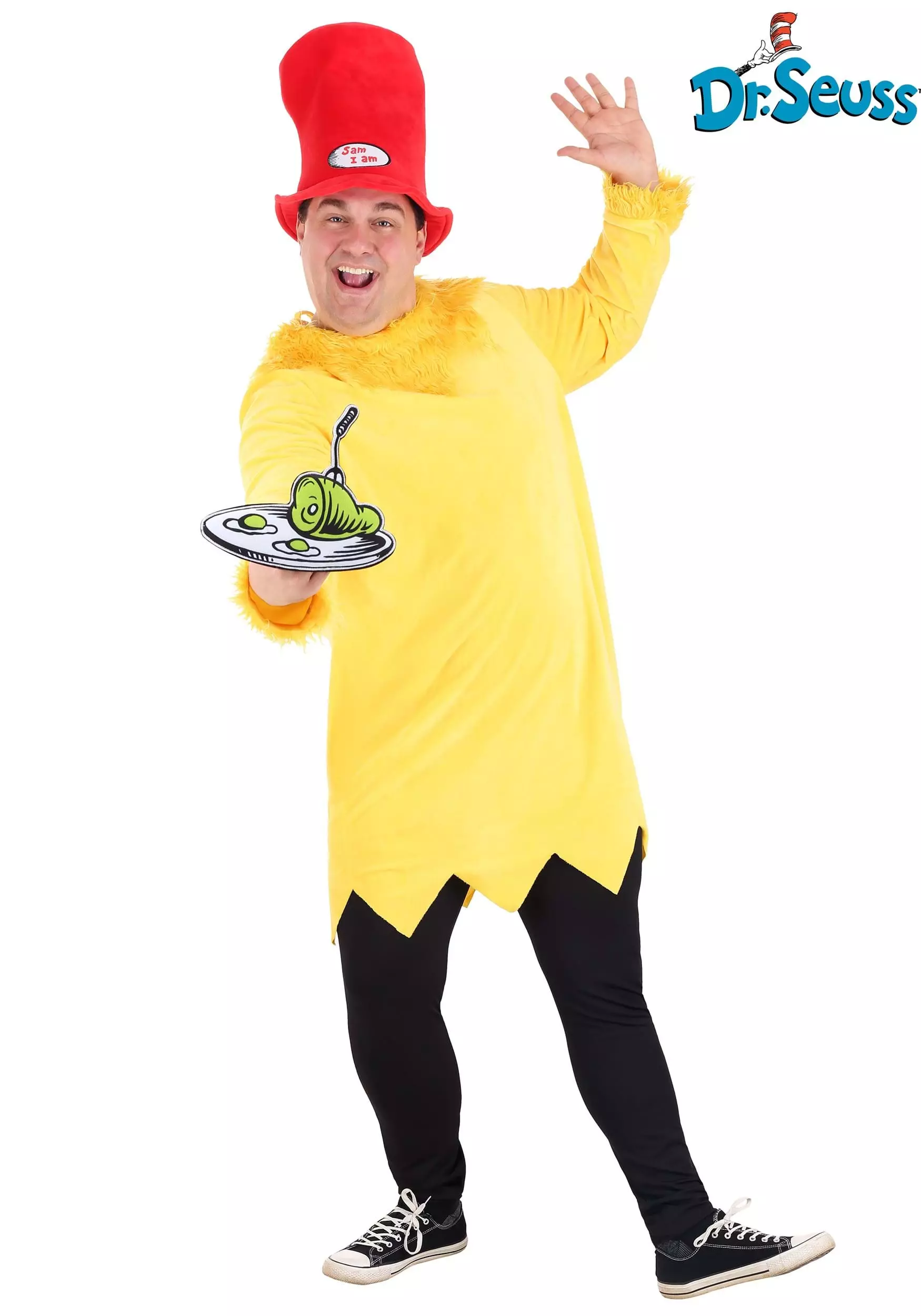 Become Dr. Seuss’s most enthusiastic breakfast pusher with this licensed Sam I Am costume! It features a bright yellow tunic with soft faux fur around the neckline and wrists for that distinct Seussian flair. A tall red with Sam I Am printed on the front makes sure everyone young and old will know who you are even before they see the included plate of green eggs and ham!