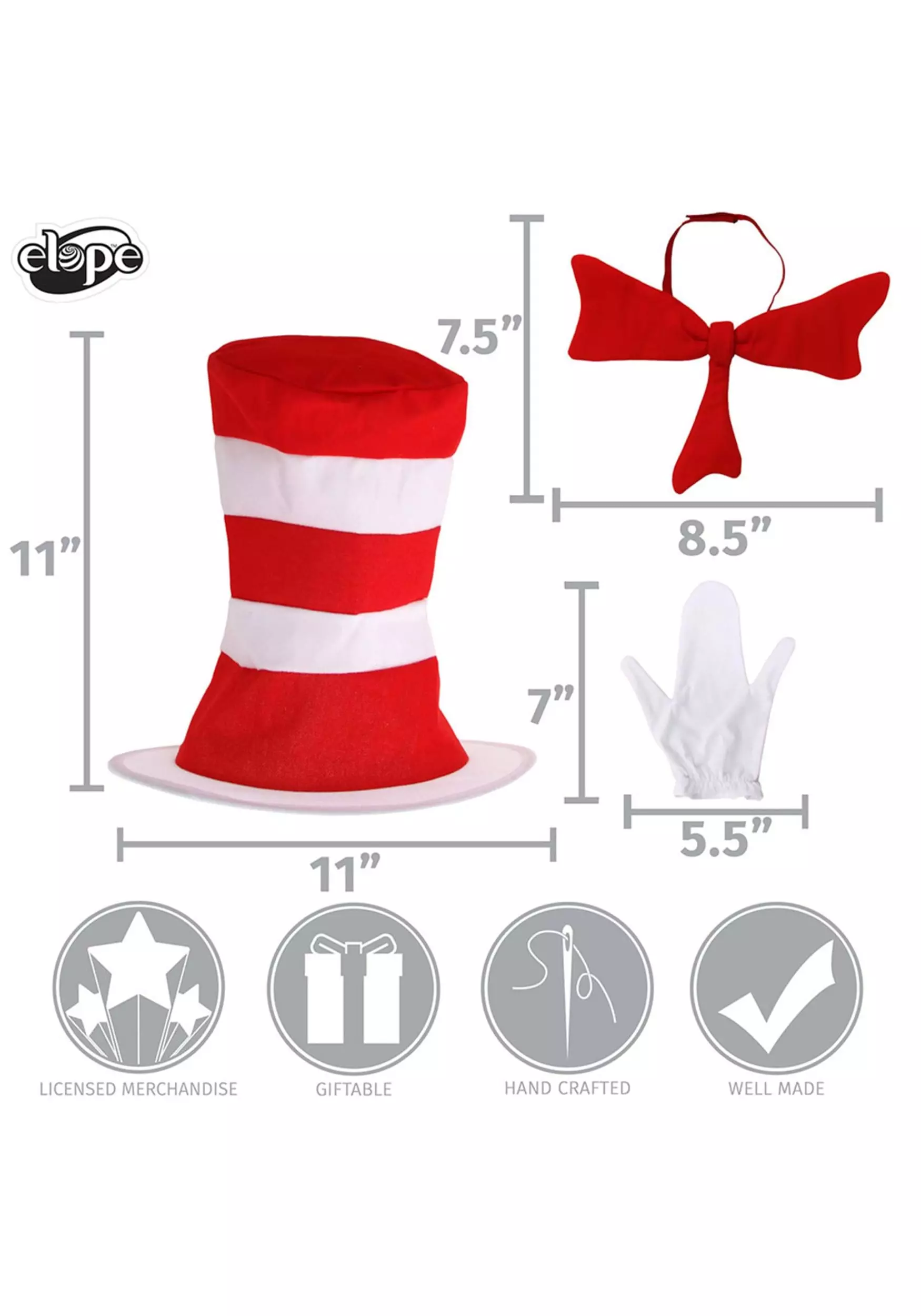 Our costume designers crafted this kit for all child fans who want to feel like The Cat! It starts with a white and red striped hat, which is constructed out of a brushed knit flannel material. The wire brim lets you shape the hat as you please, and the included bow tie gives your child the final transformation!