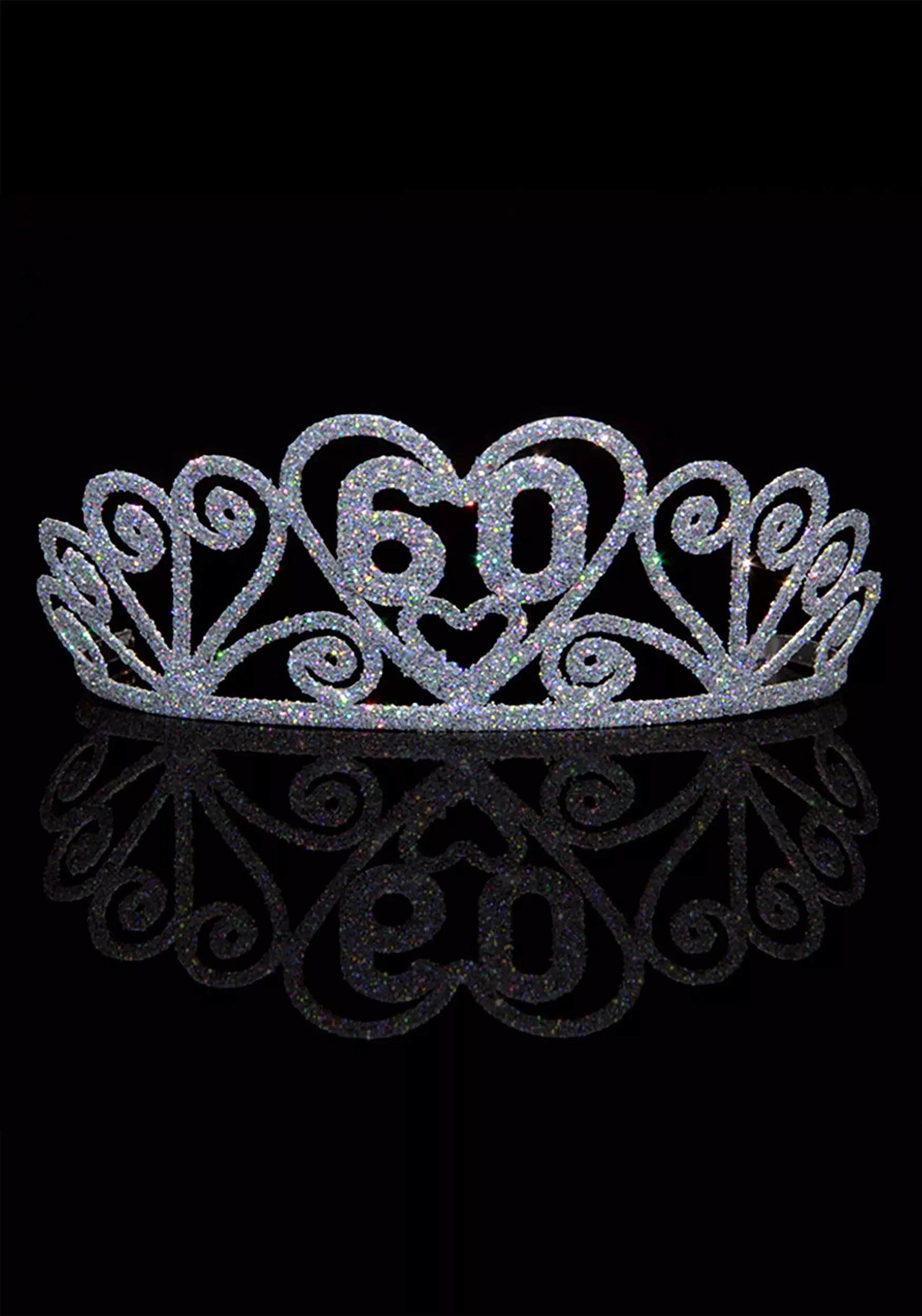 Hear ye, hear ye! A message from your benevolent ruler. It has been decreed that 60 is the new 50! Or is it the new 16? We all know that even though bodies change, our hearts can be forever young. And young or old, who doesn’t love a bit of glitter? Celebrate a birthday, wedding anniversary, or other festive event with a glittering accessory that suits such a grand occassion. This Silver 60 Sparkle Tiara awaits the honor of resting on the celebrator’s royal head! Who shall be coronated at your next diamond event?