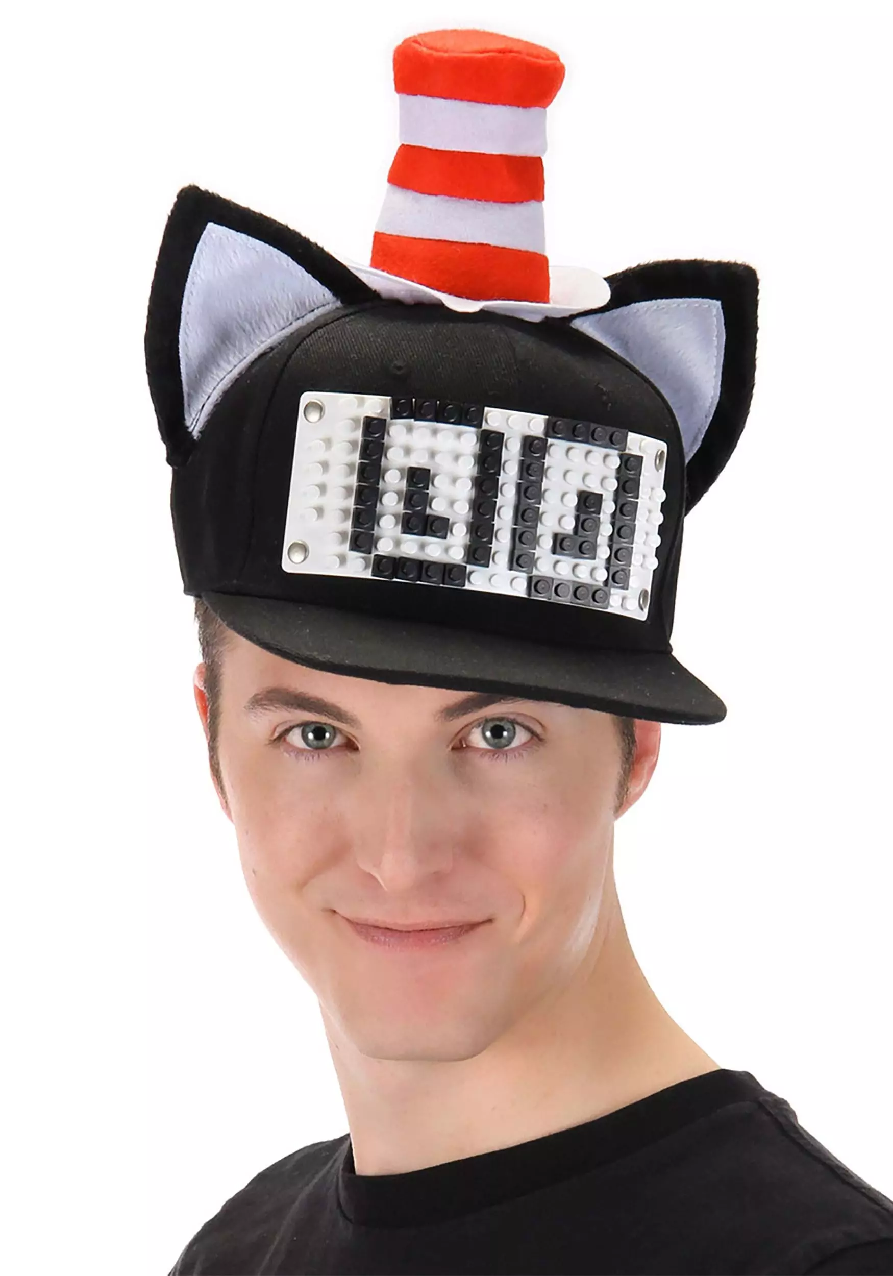 Well, okay. The Cat in the Hat Bricky Blocks Build-On Hat is trying to make you read! It’s officially licensed from Dr. Seuss and it will have you ready to spell out your favorite words!