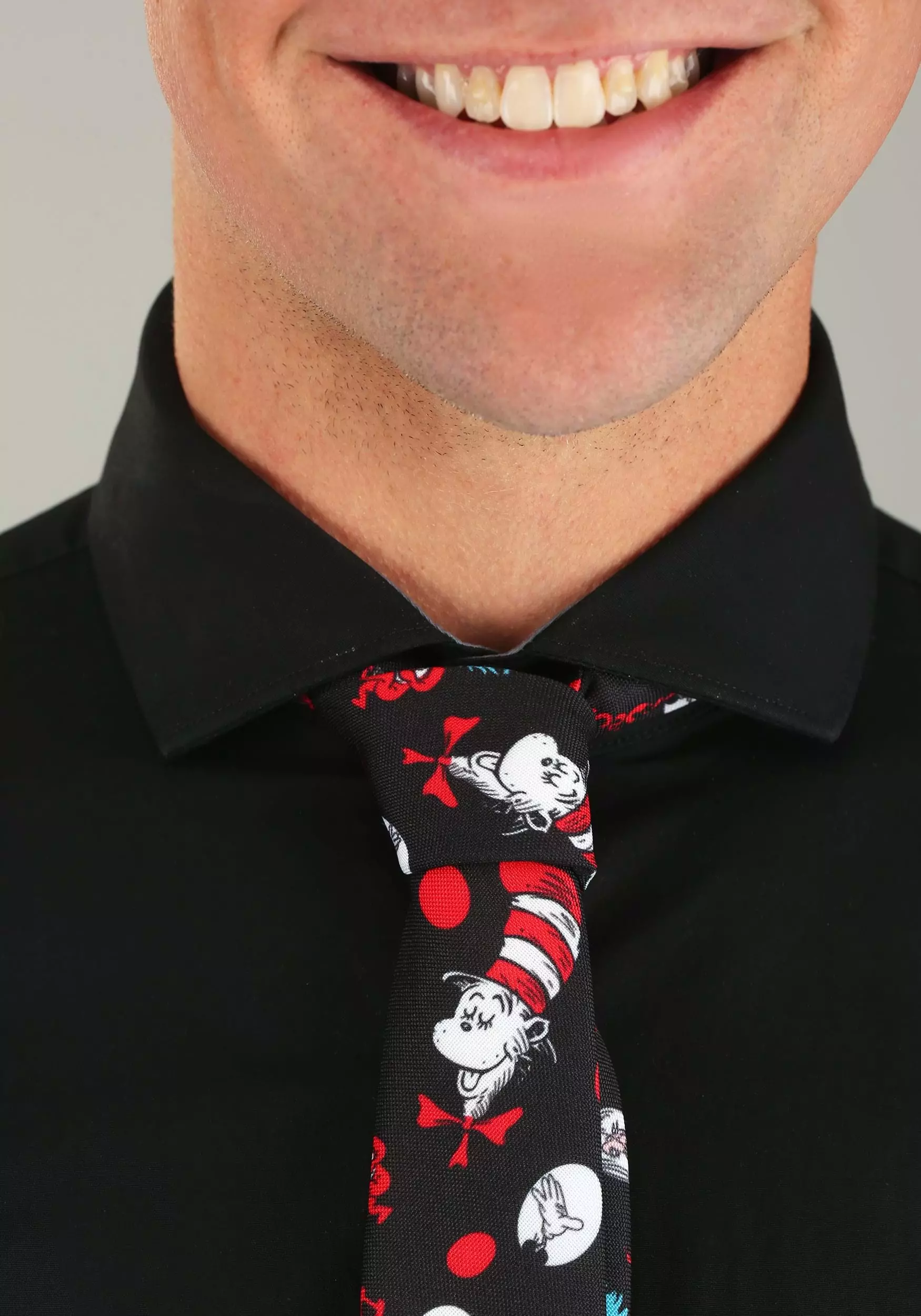The Cat in the Hat isn’t just another silly alley cat off of the streets! That’s right, he’s a high-style kitty cat with tons of class to spare. You can tell by the way he carries himself with that confident strut he does. You can also tell by the way he looks so well-put-together all of the time. You can find him strolling through town wearing his hat and tie, no matter what! If you want to add a little bit of that Cat in the Hat savoir-faire to your own outfit, then all you need is this Dr. Seuss Cat in the Hat Pattern Necktie.