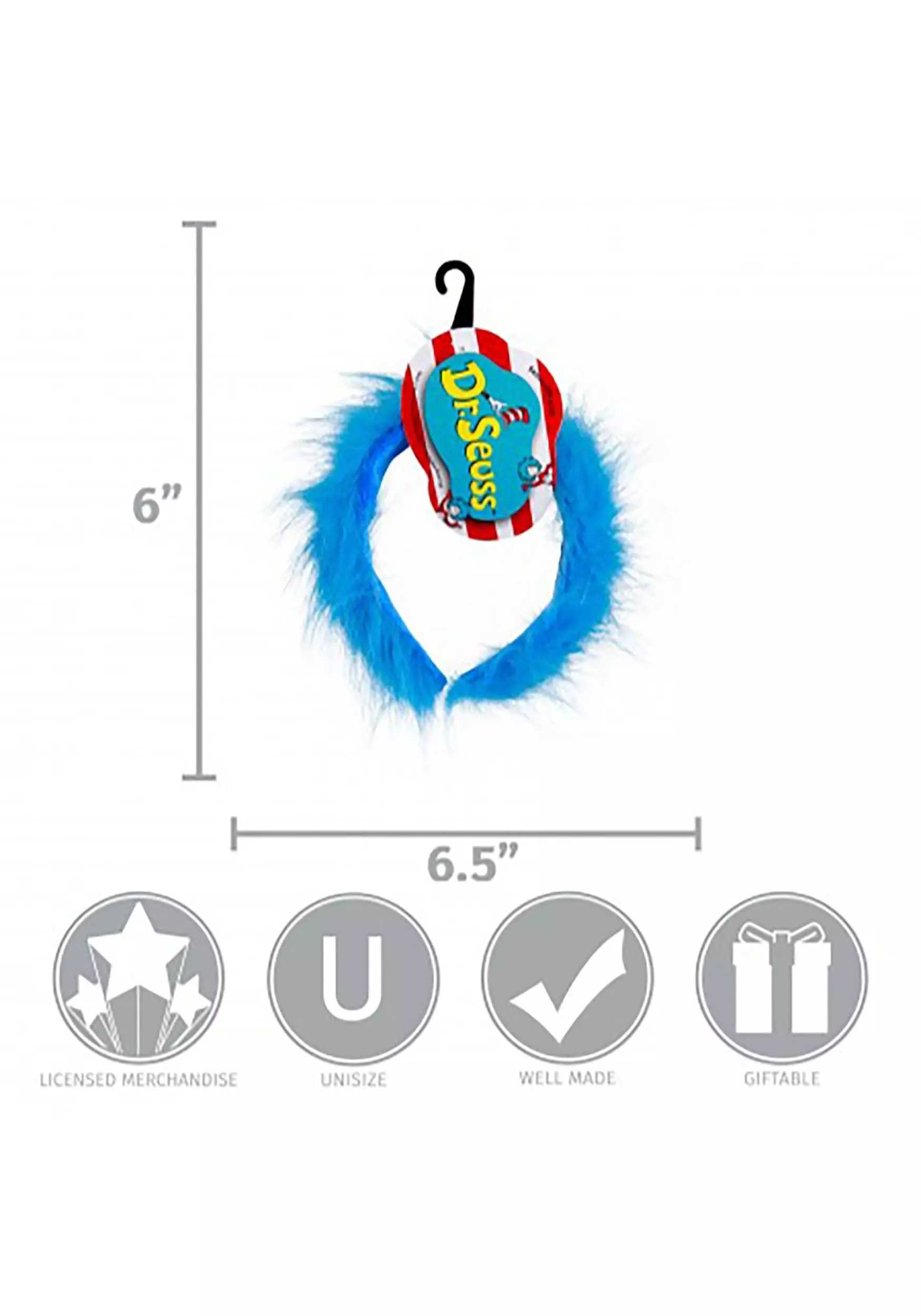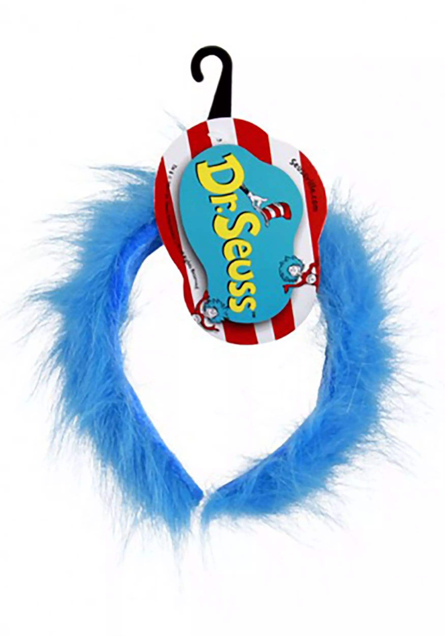 This headband is very simple; it is a band covered from end to end in bright blue, 100% polyester faux fur. Just like Thing One and Thing Two, your wild blue locks will halo your whole head. Dress it up with a red shirt of your own, or check out several Dr. Seuss themed accessories on our website! From Things 1-9 patches to red and blue striped leggings, we’ve got everything you need to complete your Thing look. So whether you are a lone Thing or one of two (or more!), you will look the part once this fuzzy headband is behind your ears.Â