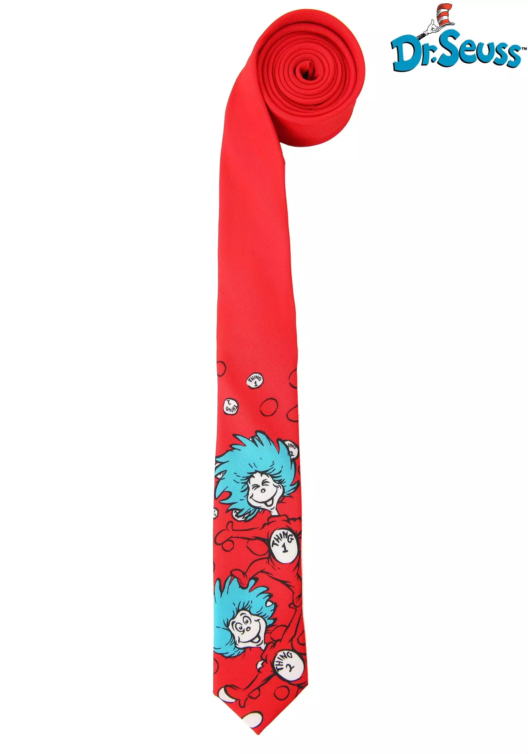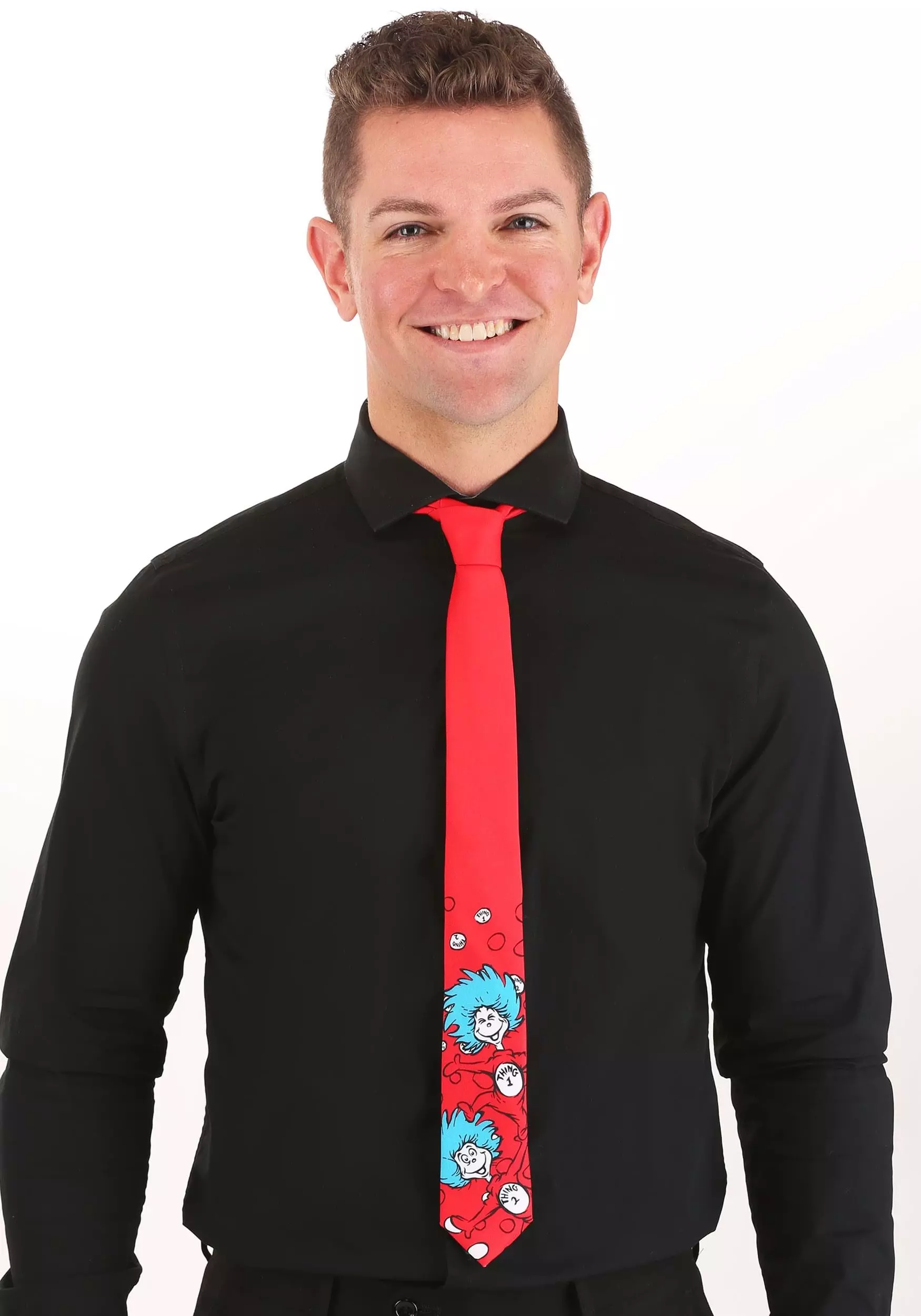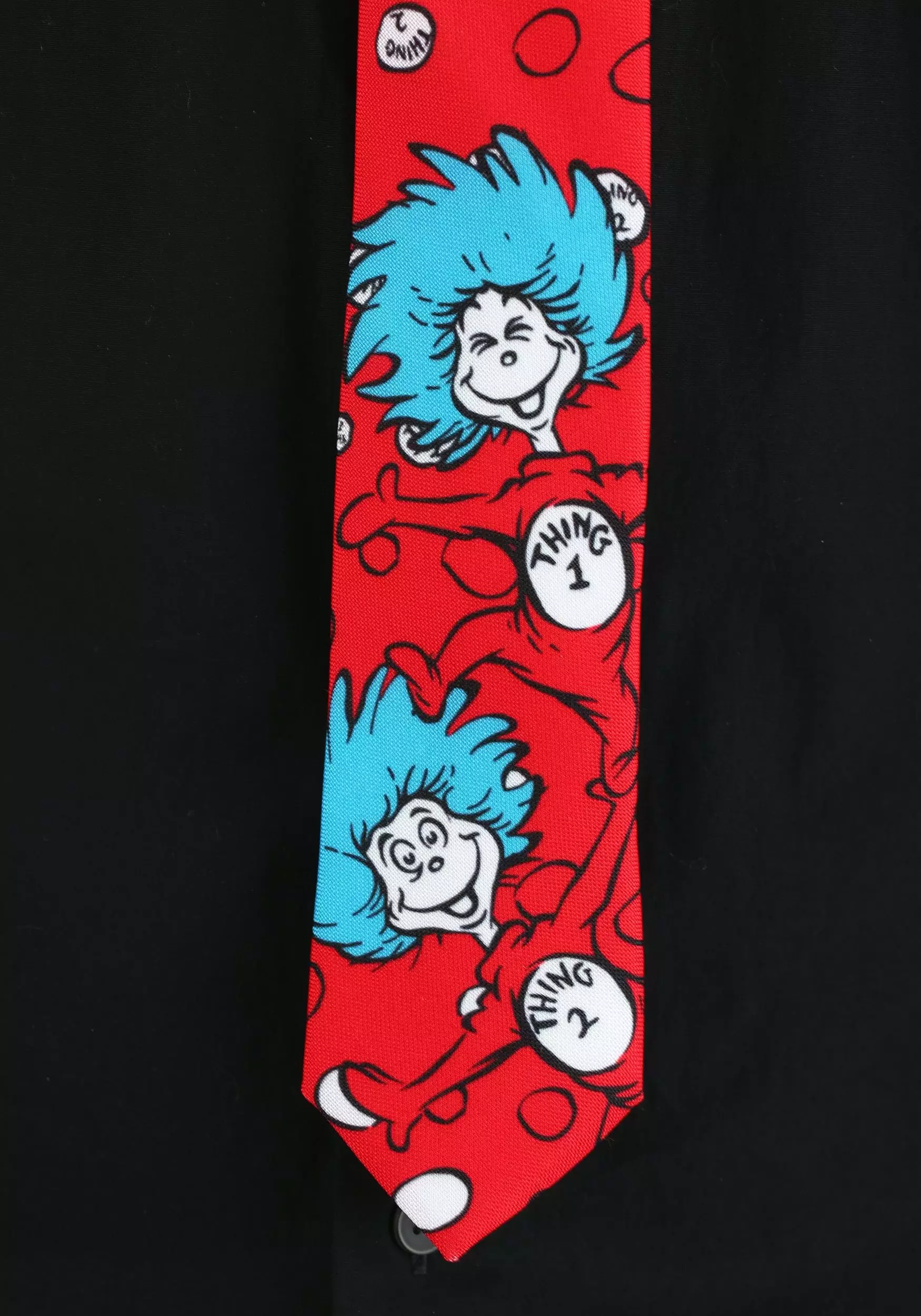 If you’re a bit of a mischief-maker (in the best possible way), then consider wearing this Thing 1 & Thing 2 Character Necktie to an office party, wedding reception, or even just a Monday work lunch. It’s a striking juxtaposition of unbridled fun mixed with the buttoned-up appearance of a necktie. How cool is that? And we think looking down at it from time to time throughout your day will inspire you to be a bit more carefree. So slide down that banister while no one is looking. Press every button in the elevator. Have a second cup of coffee. Go wild! Thing 1 and Thing 2 will have it no other way.
