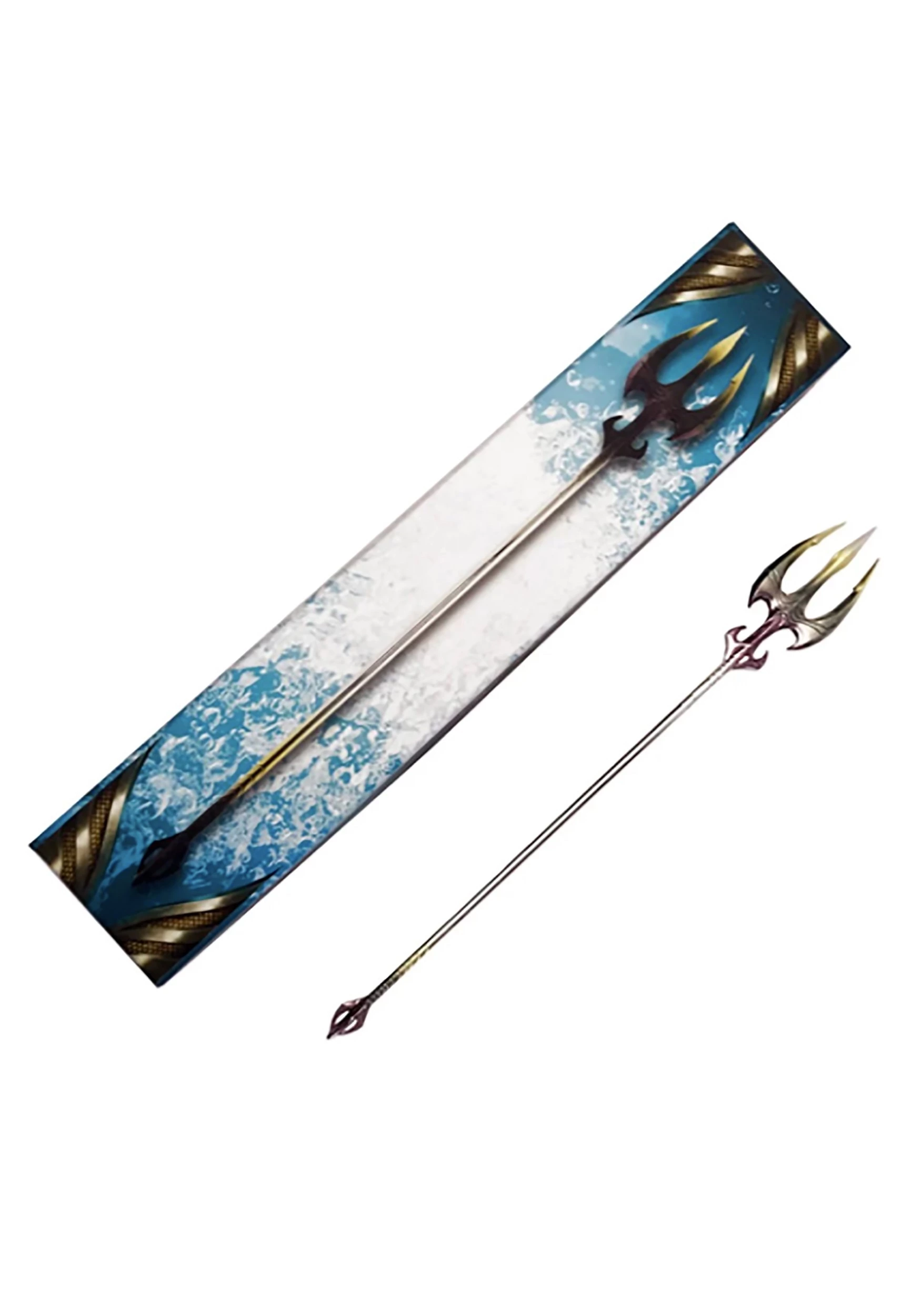 Dive into the fun of DC Superhero glory when you wield this officially licensed Aquaman Replica Trident. The trident is crafted of metal brushed with a golden tone. It measures just under a foot in length, so perhaps you won’t be posing in fully heroic form with a trident over your shoulder… but just imagine! If the real Aquaman looks as tough as he manages, you’ll be a literal giant by comparison! Just use your power wisely.Â