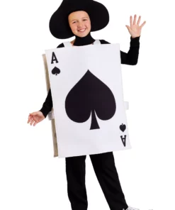 Based on the iconic playing card, this exclusive costume helps make sure that your family always has an Ace up your sleeve. Our costume designers made this simple costume both an easy to wear outfit. It comes with a pullover style tunic that has a rectangular front and back. Both sides feature a giant spade design, along with the signature “A” in the corners. The hood is shaped like a giant spade symbol.