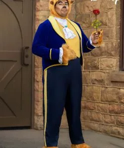 This Beauty and the Beast costume is a plus size version of our Beast costume. It comes with everything you need to transform into the Disney character! The costume starts with a simple vest and an accompanying royal blue jacket with gold accents. The white jabot fits around your neck to give you a princely appearance. The black pants feature elastic in the waist that stretches to fit a variety of sizes. The finishing piece to this costume is the headpiece, which is covered in a layer of faux fur material. It even has a pair of ears and horns on top. When you have it all on, you can be the compassionate prince from the movie!