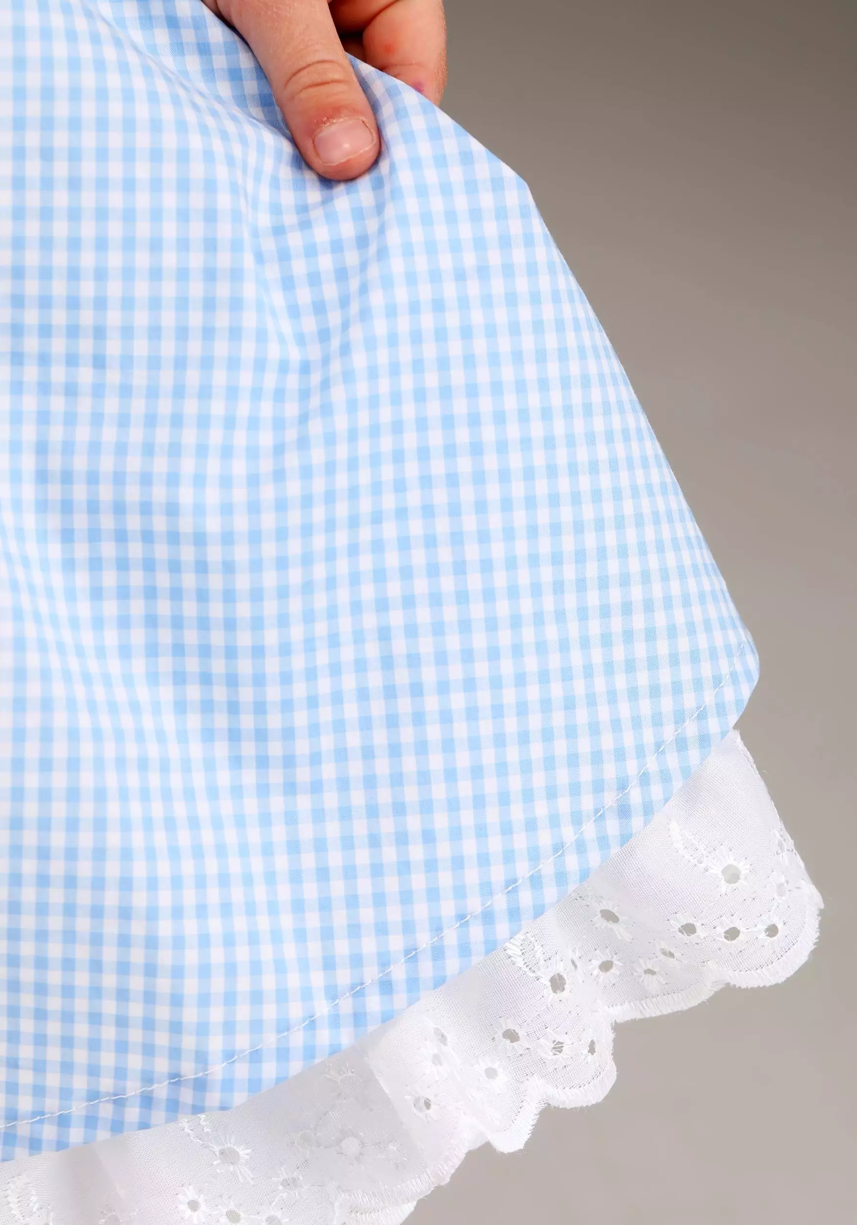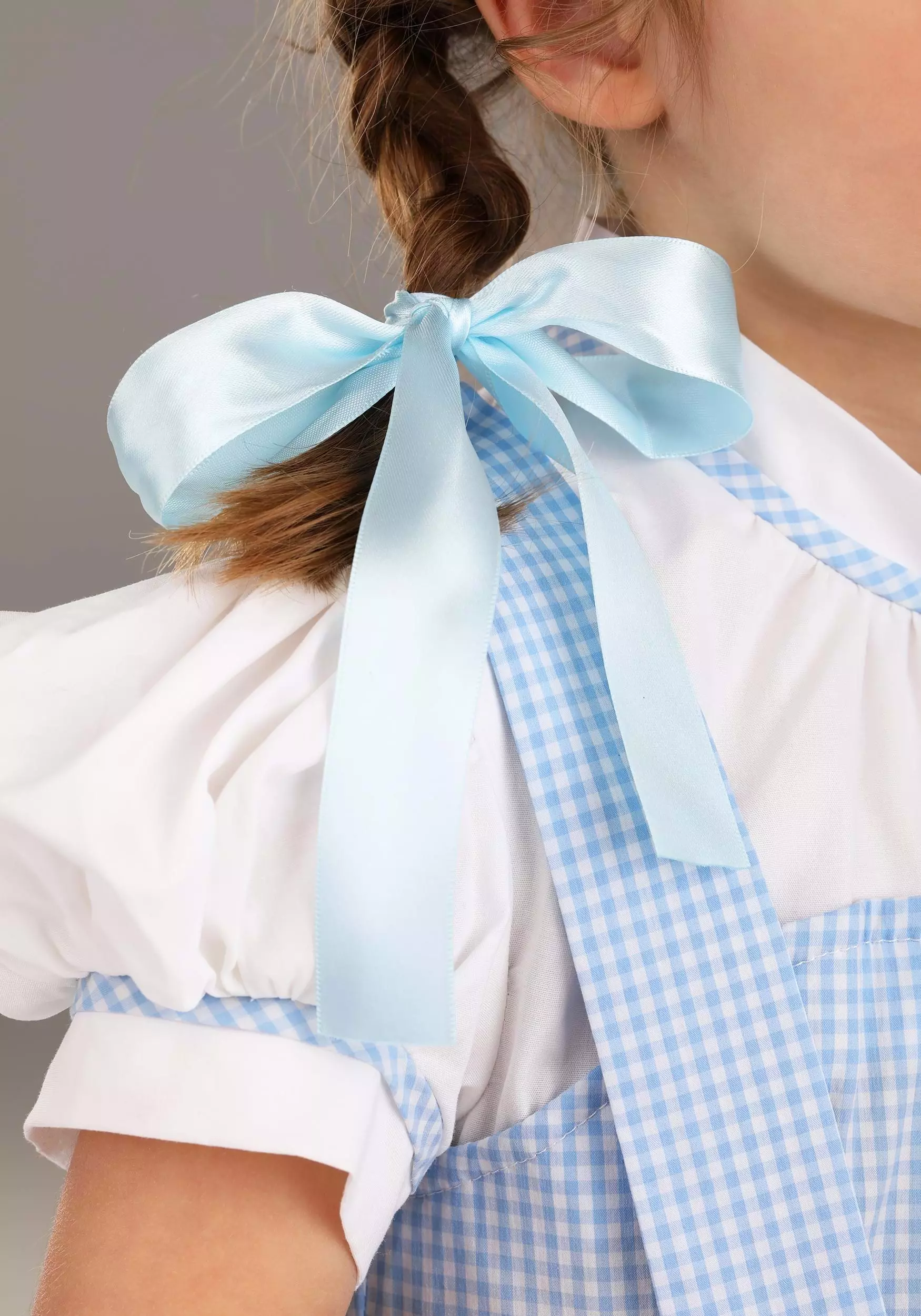 Our design team had the classics in mind when they crafted this exclusive costume. It’s made to help your child step right into her favorite Kansas story without missing a beat. It’s a single zip-up dress styled to look like a pinafore over a puff-sleeved white blouse, complete with two large white buttons on the straps. White eyelet underlays the skirt, and an overall blue and white gingham pattern makes this piece pastorally perfect.