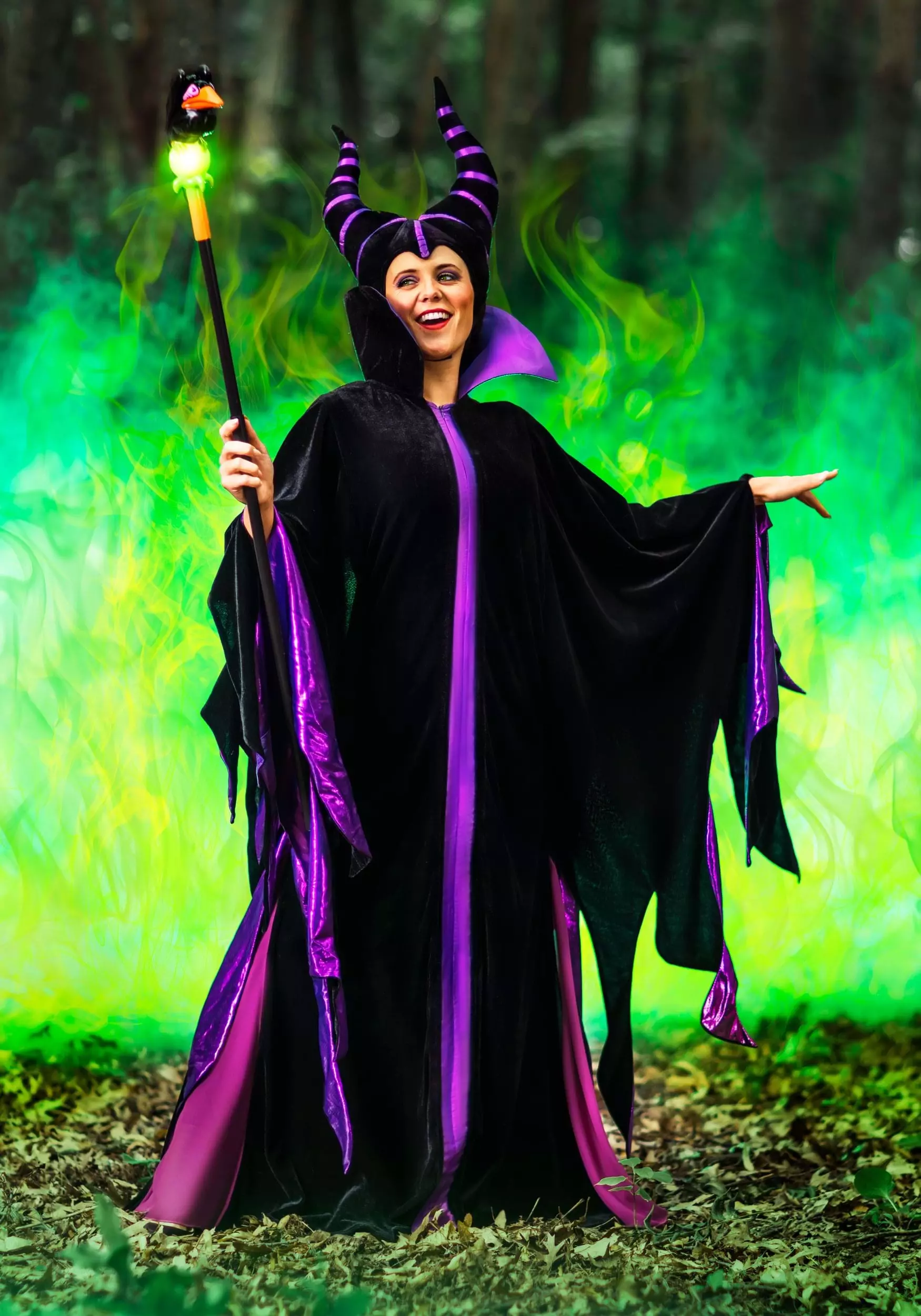 Of course, we love our heroes, but sometimes it’s more fun to play the villain. Express your darker side with this Classic Maleficent costume from Disney’s Sleeping Beauty. This robe and headpiece set was designed and Made By Us so you can look just like this classic character whenever the mood strikes you.