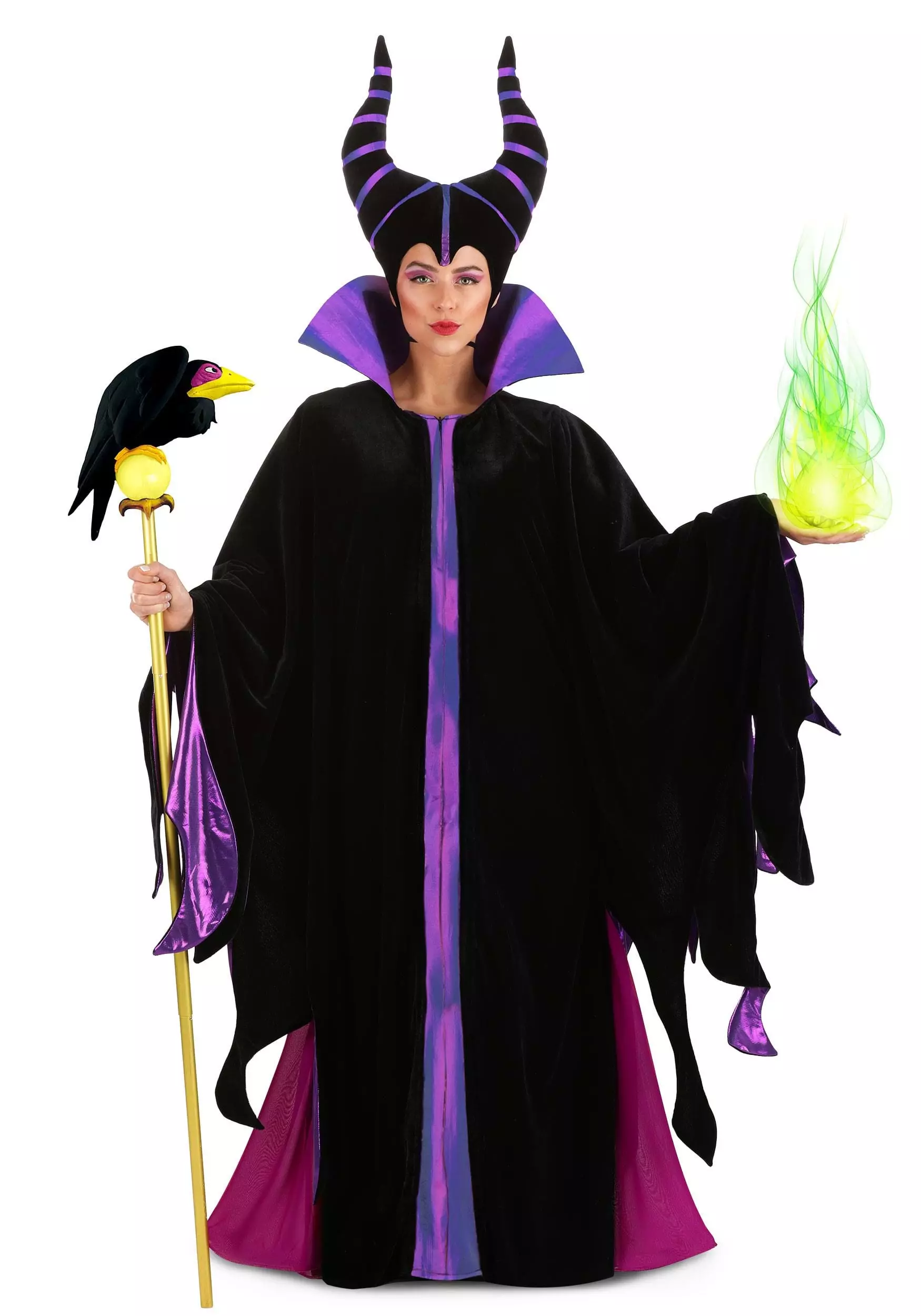 This stunning robe is made from black velvet and has purple accents that match the imposing headpiece. The pink fabric on the inside provides some lovely color contrast. Once you have this costume on, all you’ll need is a raven companion, and then you’ll be ready to intimidate royalty!