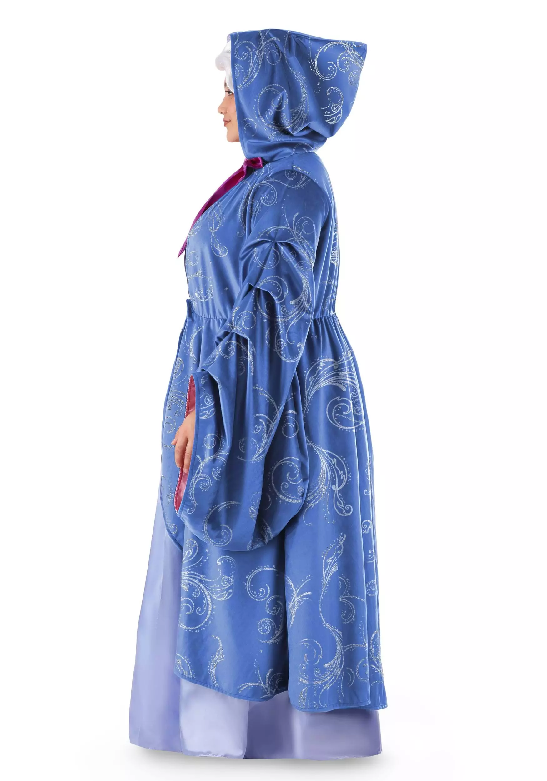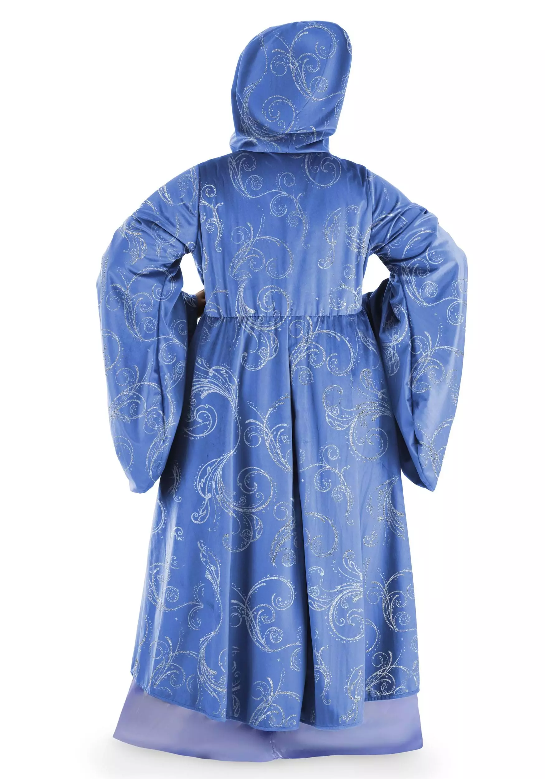 The fitted bodice and loose fit skirt create a form-flattering shape on most figures. The real magic of the costume, however, comes from the included robe. Large, billowy sleeves, an oversized hood, and glittering details print on velveteen material give the costume piece a luxurious feel. Sateen linings push the luxury further. Meanwhile, the attached bow adds that signature bit of whimsy the Fairy Godmother is known for.