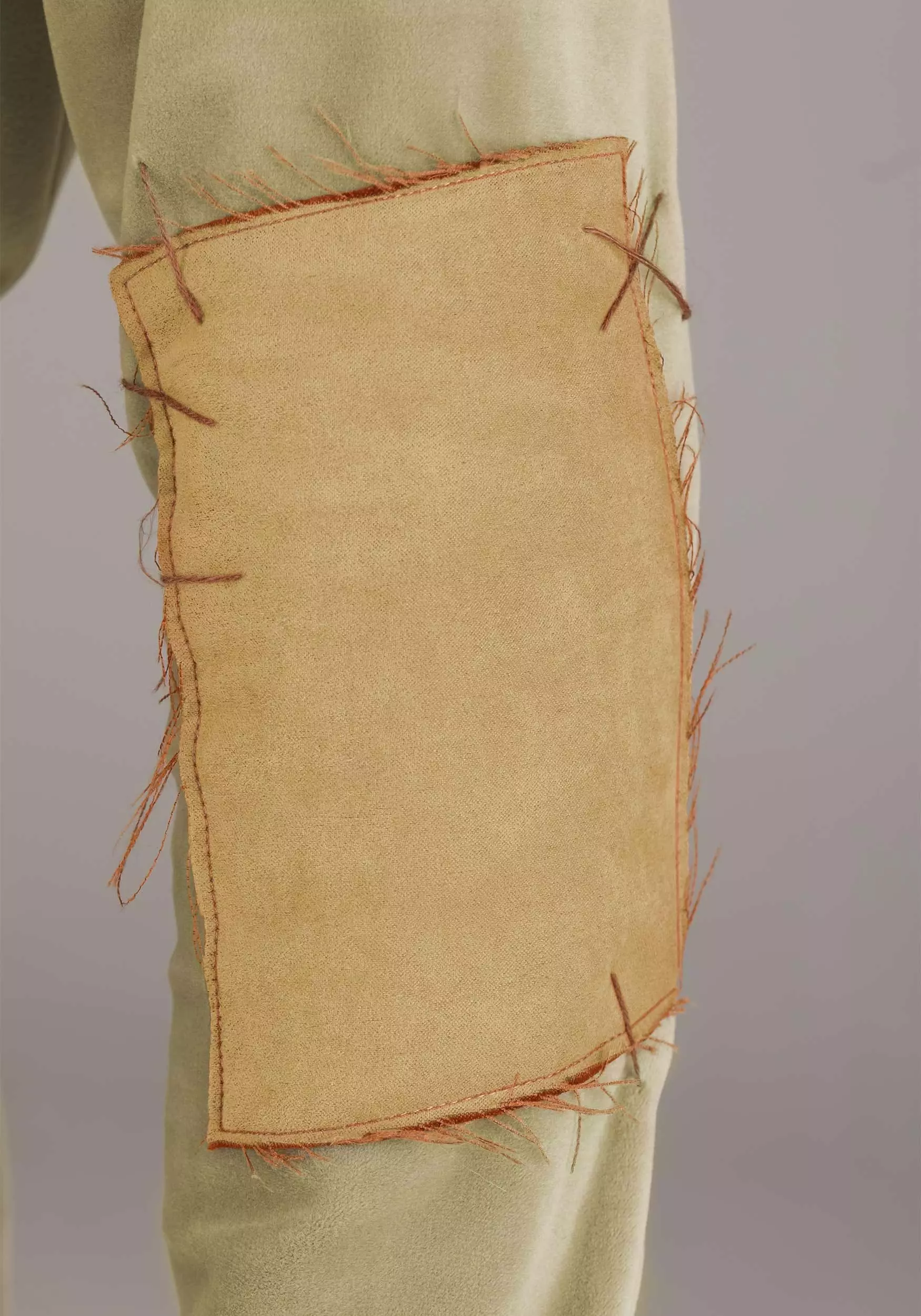 - Cuddle plush shirt has snap button closure on the back, faux suede patches, felt buttons