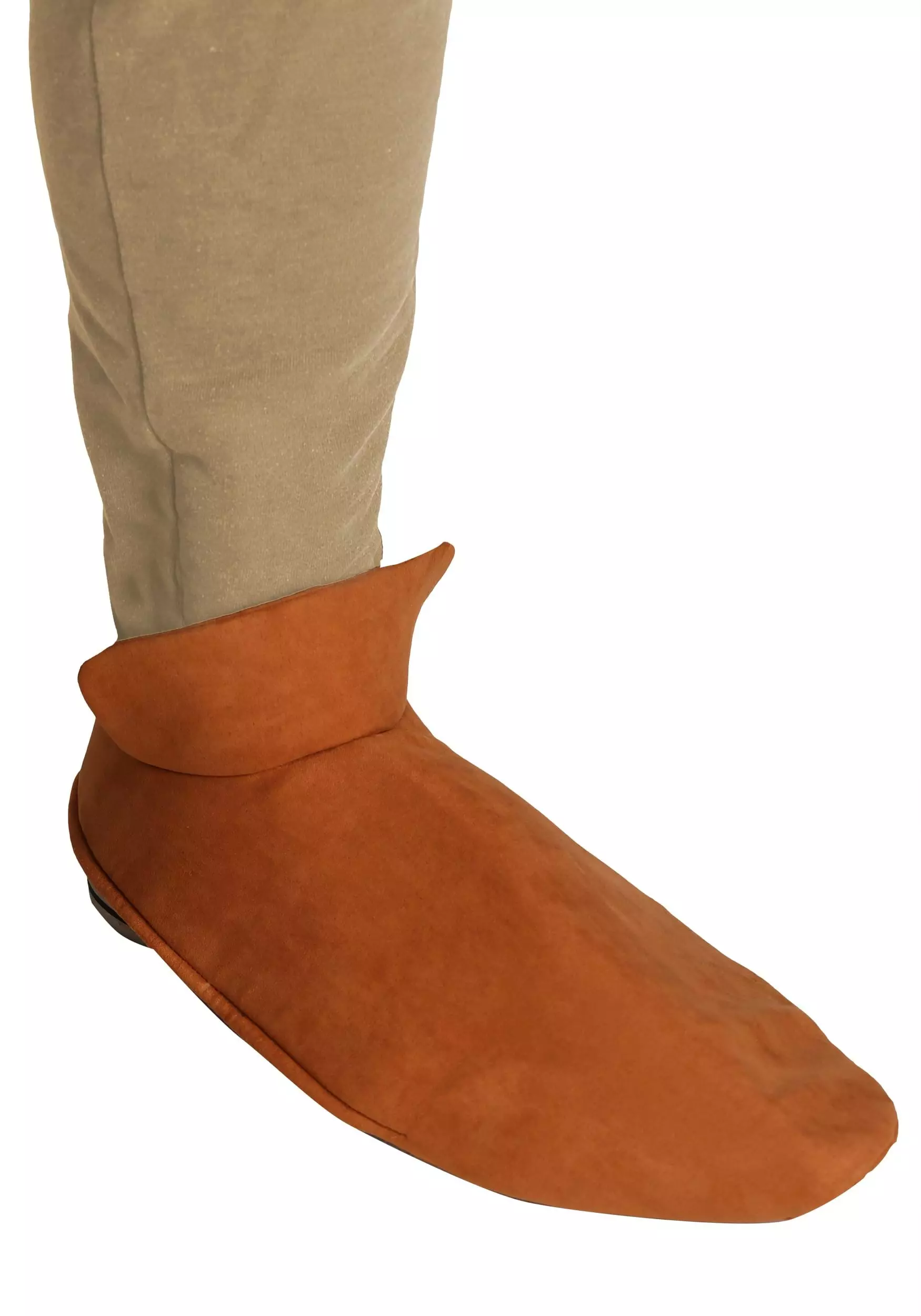 - Pair of faux suede foam foot covers w/ elastic bands to secure under your feet