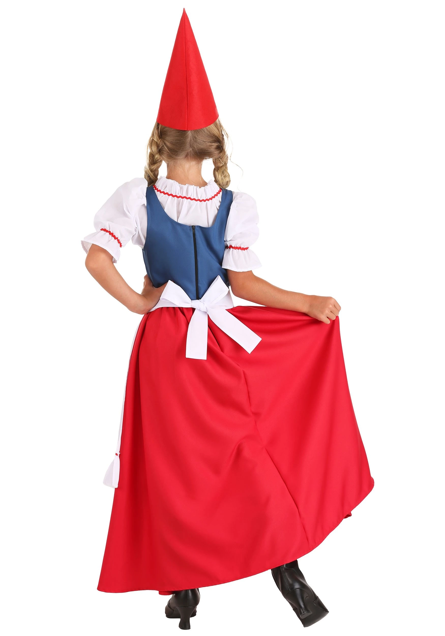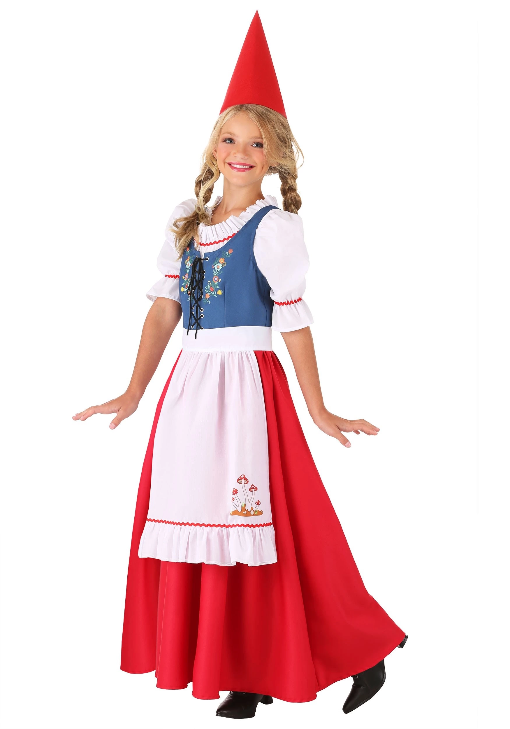 Give your child the outfit to match their gnomish Halloween act with this Garden Gnome Girl’s Costume! The Made by Us ensemble comes with all the pieces your kiddo will need to turn into their fairy tale familiar. A white, peasant-style blouse starts the look with ruffled hemlines and red rick rack ribbon. A floor-length dress features a red skirt attached to a blue bodice with shoe-lacing and a printed floral pattern. A toadstool-printed apron ties around the waist. Polish off the sweet look with the included felt hat that no gnome would be caught without.