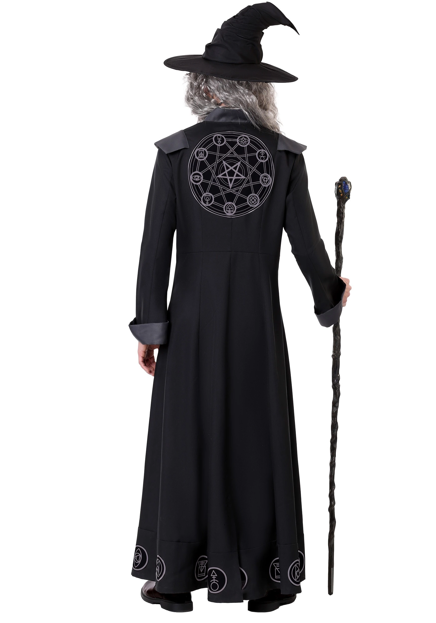 Make sure that you are ready for all your mystical incantations when you garb yourself up in this exclusive Warlock Costume. Our team of magic-dabbling designers know all the right stitches and arcane circles to make sure that this look lasts as long as you will! You’ll be feeling like a master caster in no time thanks to the exquisite black, grey, and metallic silver on this long overcoat. The mandarin style collar and neck to waist buttons are elegant and the embroidered magic circles ensure you’re always ready for the magic. The canvas hat has a wide brim and aged look. Can’t look like you just started practicing!