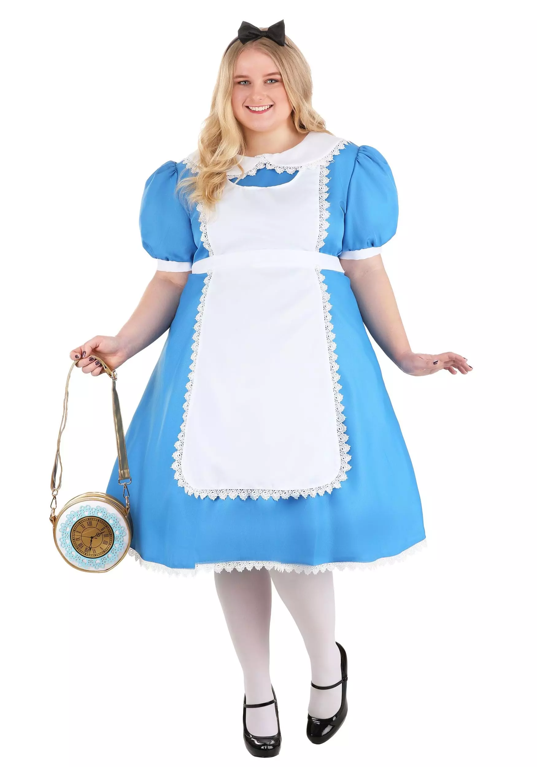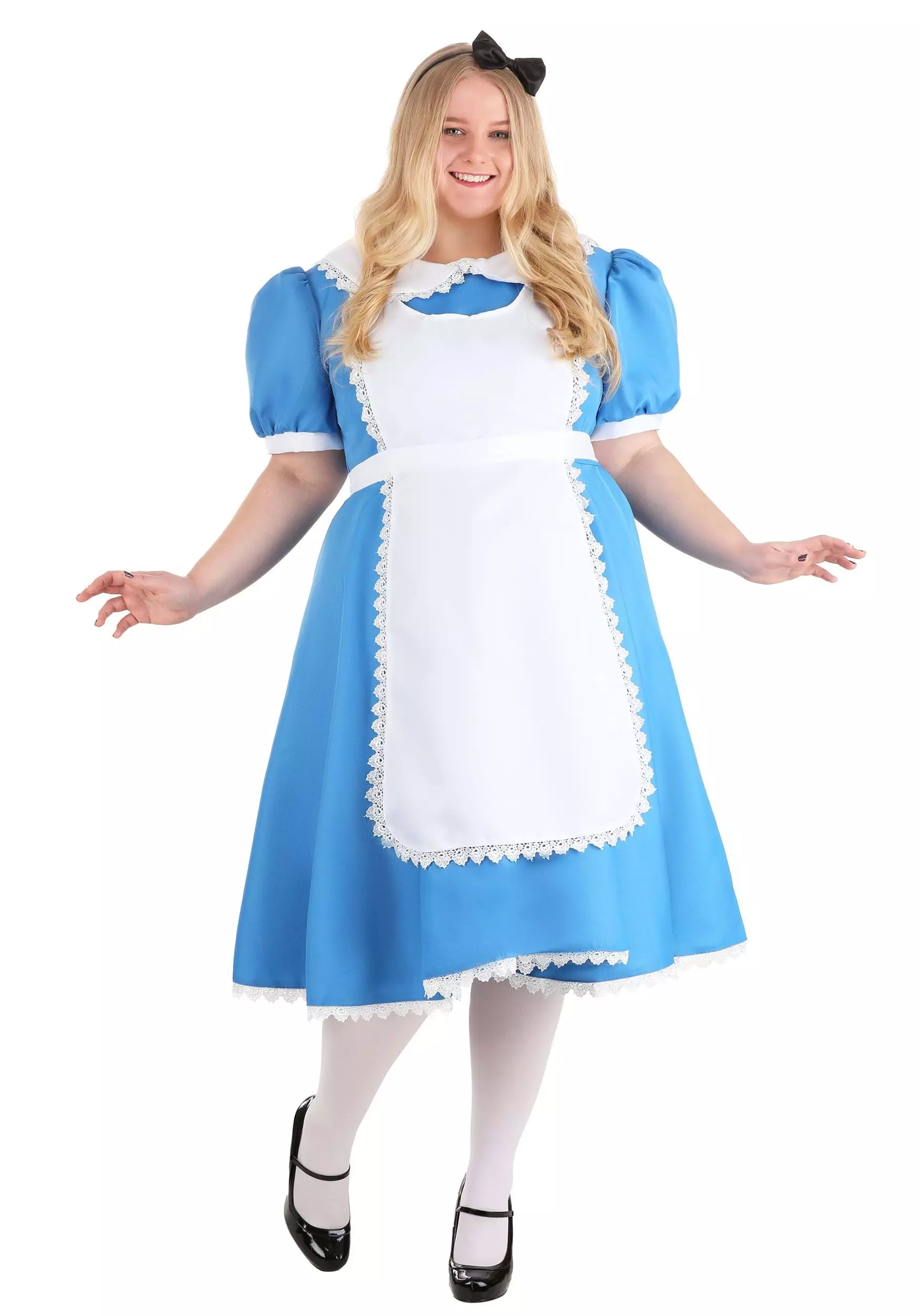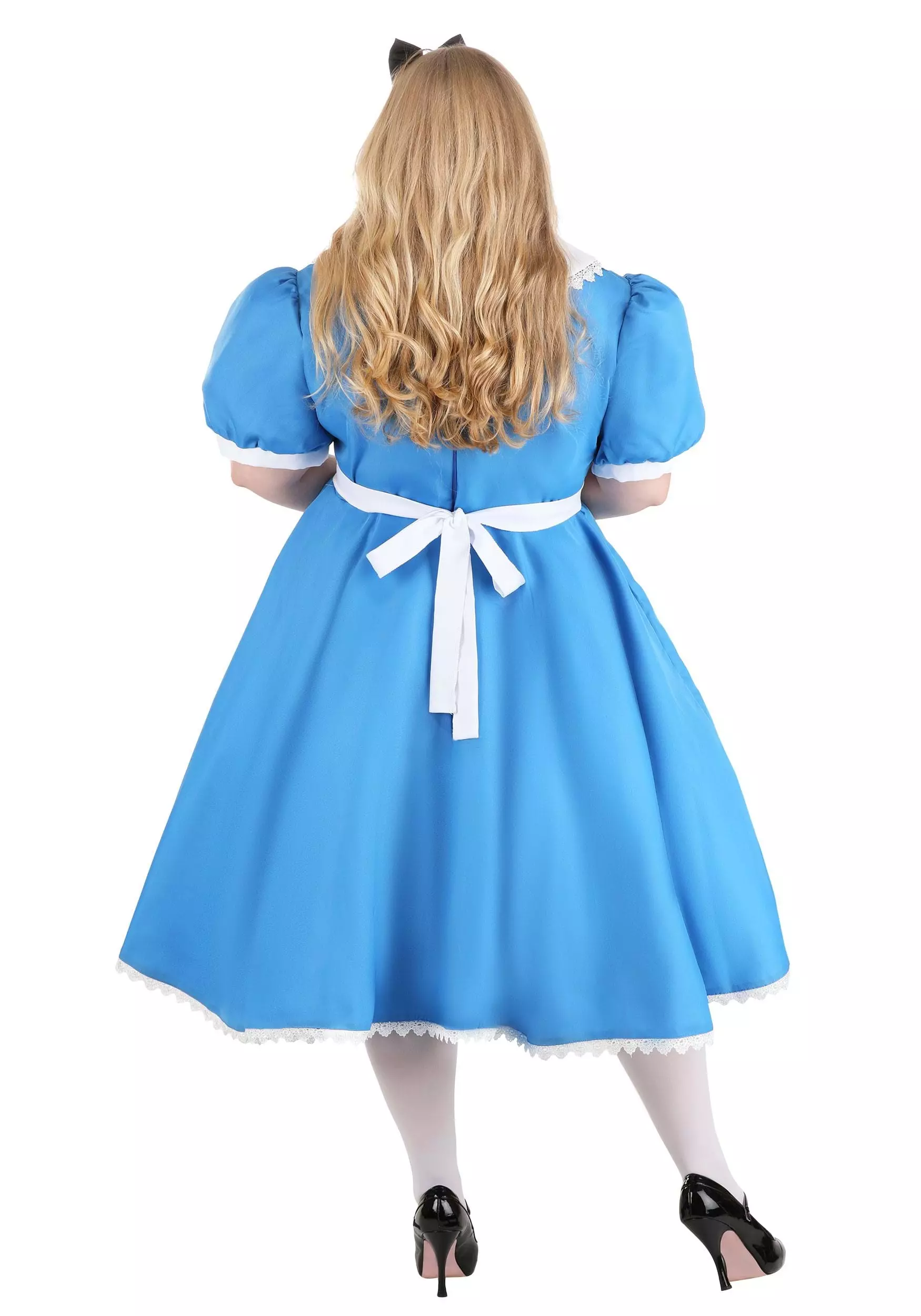 Sometimes you just need to go on vacation, but you’ve been almost everywhere now and what’s left? We think you should go to Wonderland! It’s pretty wonderful. But you have to dress the part. Get our plus size supreme Alice Costume and you’ll fit right in. Now you can see the local sights, like the famous Tea Party Garden, the white rose hedges, and if you’re lucky you can see the Queen of Hearts playing croquet at the Royal Palace. Sounds like fun, no? Get into our plus size supreme Alice costume and you’ll be ready to go on your trip. Just make sure you pack your pocket watch, things get weird in Wonderland.Â