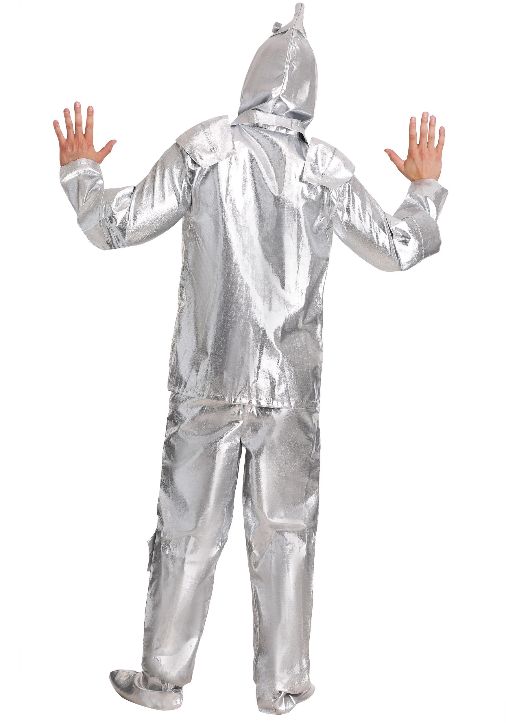 Take heart with this Plus Size Tin Woodsman Costume! The exclusive costume is 100 percent polyester metallic knit fabric that looks like tin, and it includes a shirt, pants, hood and shoe covers. The shirt has metal snaps at the center front as well as decorative shoulder and elbow pads that are anchored by buttons. The pants have similar decorative kneepads that are anchored by buttons, along with an elastic waist for comfy fit. The balaclava-style hood slips over the head, and it has an attached funnel on top, which can be stuffed with tissue if desire to maintain its shape. The shoe covers have elastic at the ankles and underfoot to easily attach.