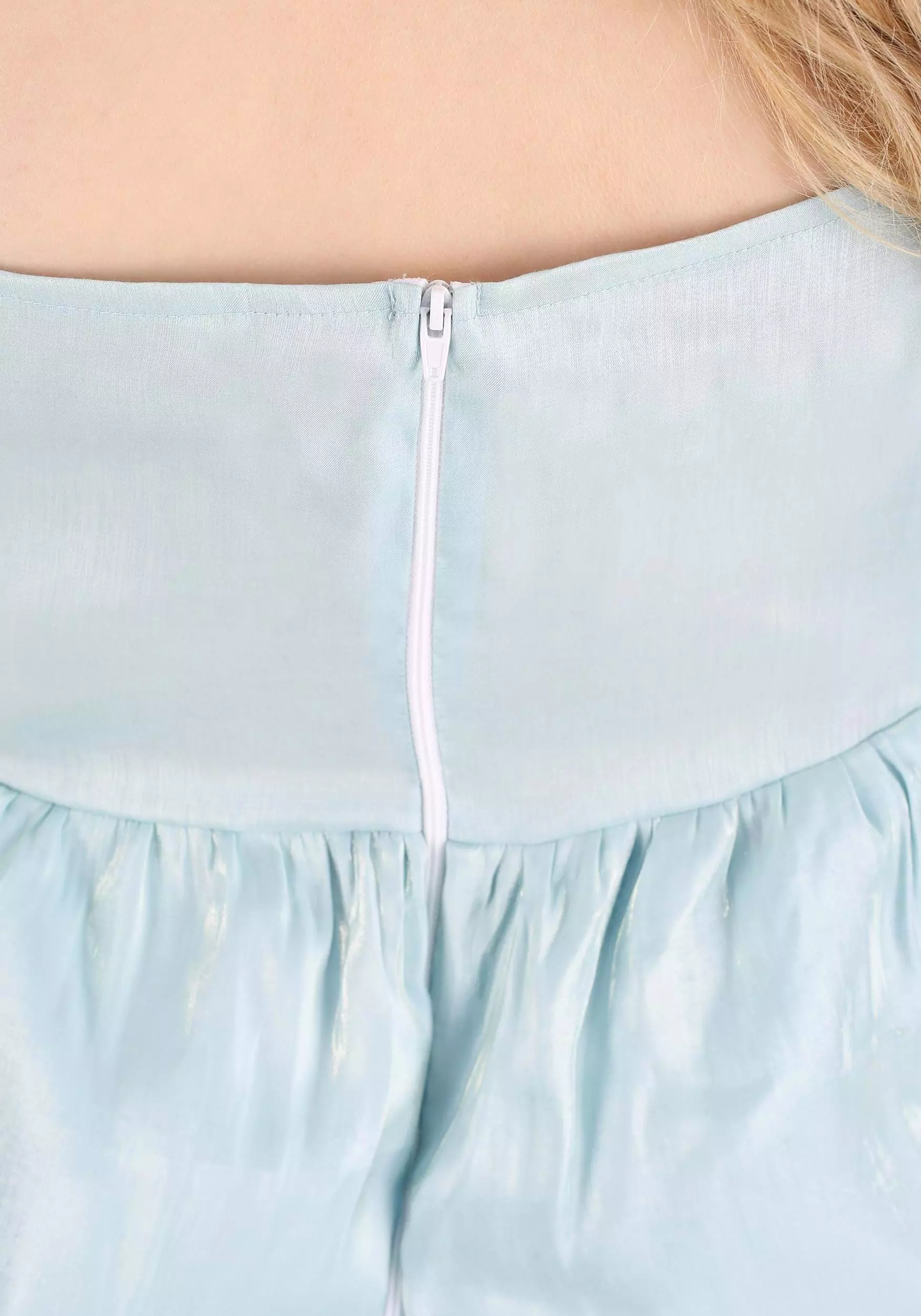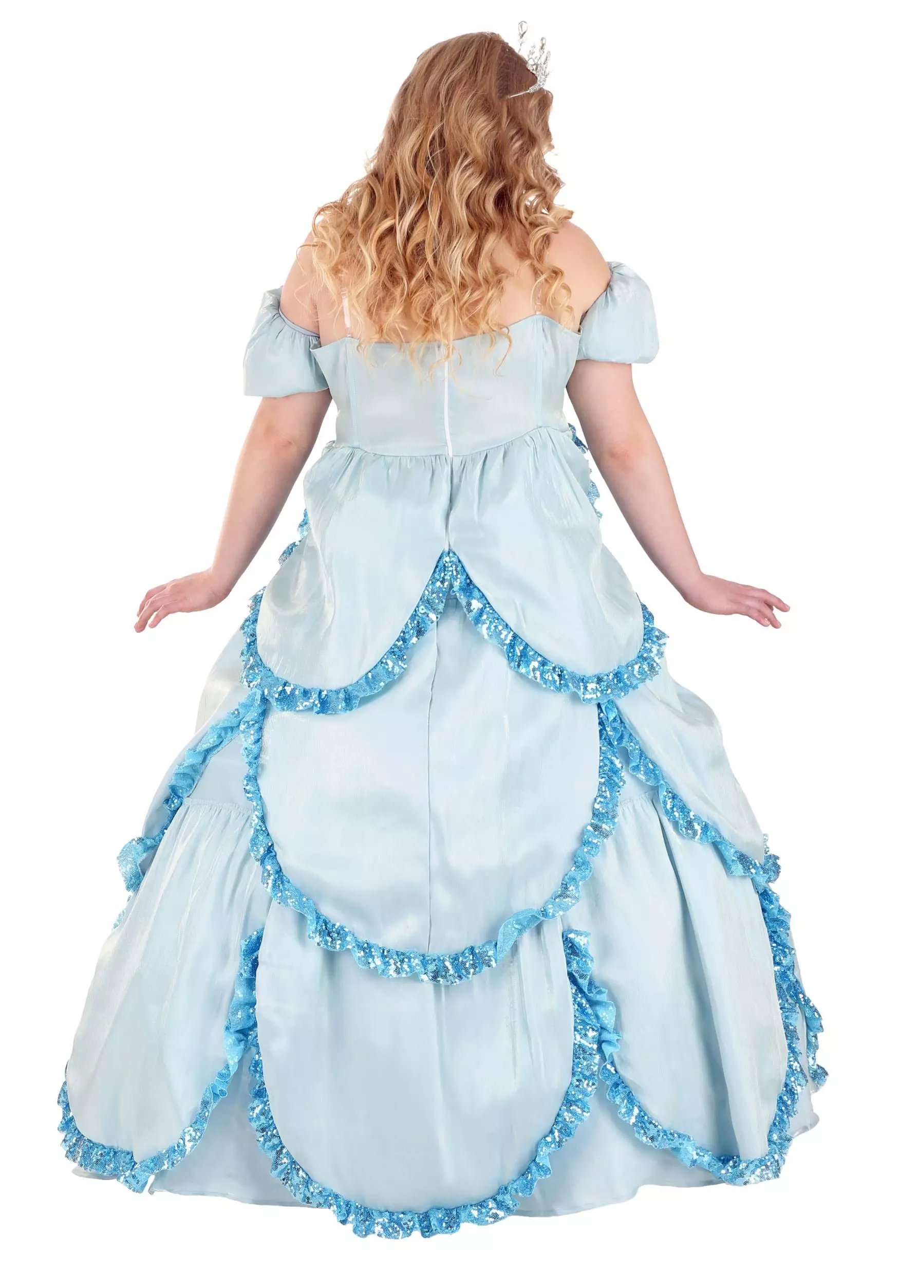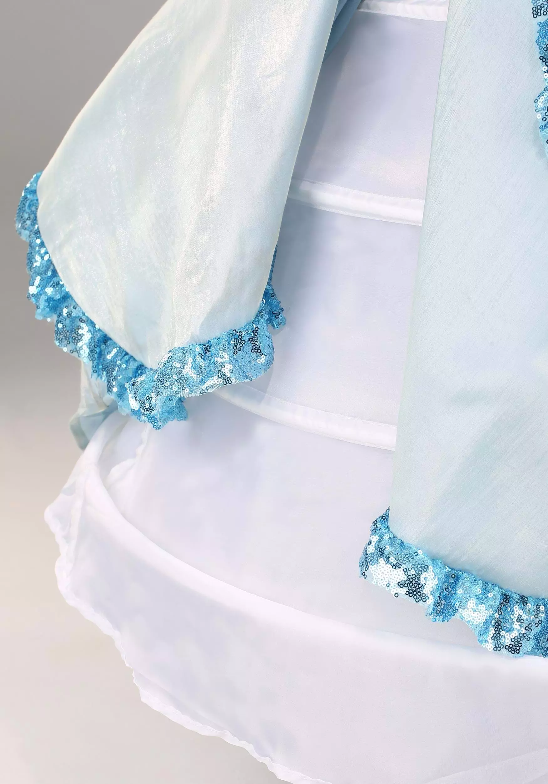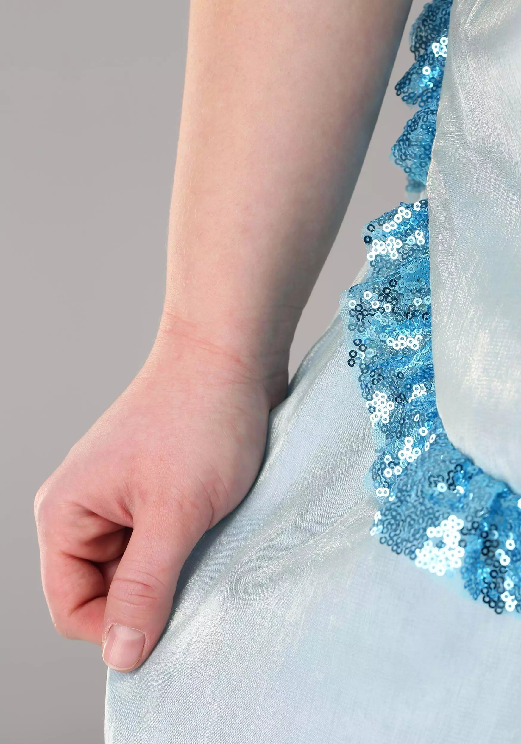 We asked our in-house design team for a totally bewitching look, and they delivered, sparing no detail! The result is this exclusive costume that drapes you in ice-blue ruffles and shiny details. Each ruffled layer is accented by blue sequin trim, as is the bust. The dress features a structured underskirt for a full gown effect, as well as off-the-shoulder draping for a look that’s ready to be swept away to a Halloween ball!