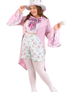 Our team of designers assumed that mentioning flowers meant they needed to think spring and from there, our Pretty Mad Hatter Costume blossomed. Starting with pastel colors and florals prints, the exclusive ensemble came together to create something special. With flowers in mind, a bell-sleeve jacket with stitched in ruffles was created in a pink fit for the prettiest bud. The Hatter’s old bowtie was replaced with a fuller, bright-pink striped bow. A floral print fabric was used to create the scallop-edged shorts and large top hat that are sure to make anyone look like they’re nestled in a garden bed.