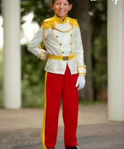 Inspired by his outfit from the animated classic, Cinderella, this child costume comes with everything your dapper little prince-in-training needs. It starts with a cream-colored jacket, which has gold detailing, and a pair of gold epaulets on the shoulders. The red pants bring a splash of royal color into the outfit and they fit with elastic in the waist to help provide a comfortable fit. The gold belt matches the detailing on the jacket. The final piece of this ensemble comes in the form of a pair of white gloves. When your child has the entire outfit on, they’ll be ready to turn on the charm during the next ball!