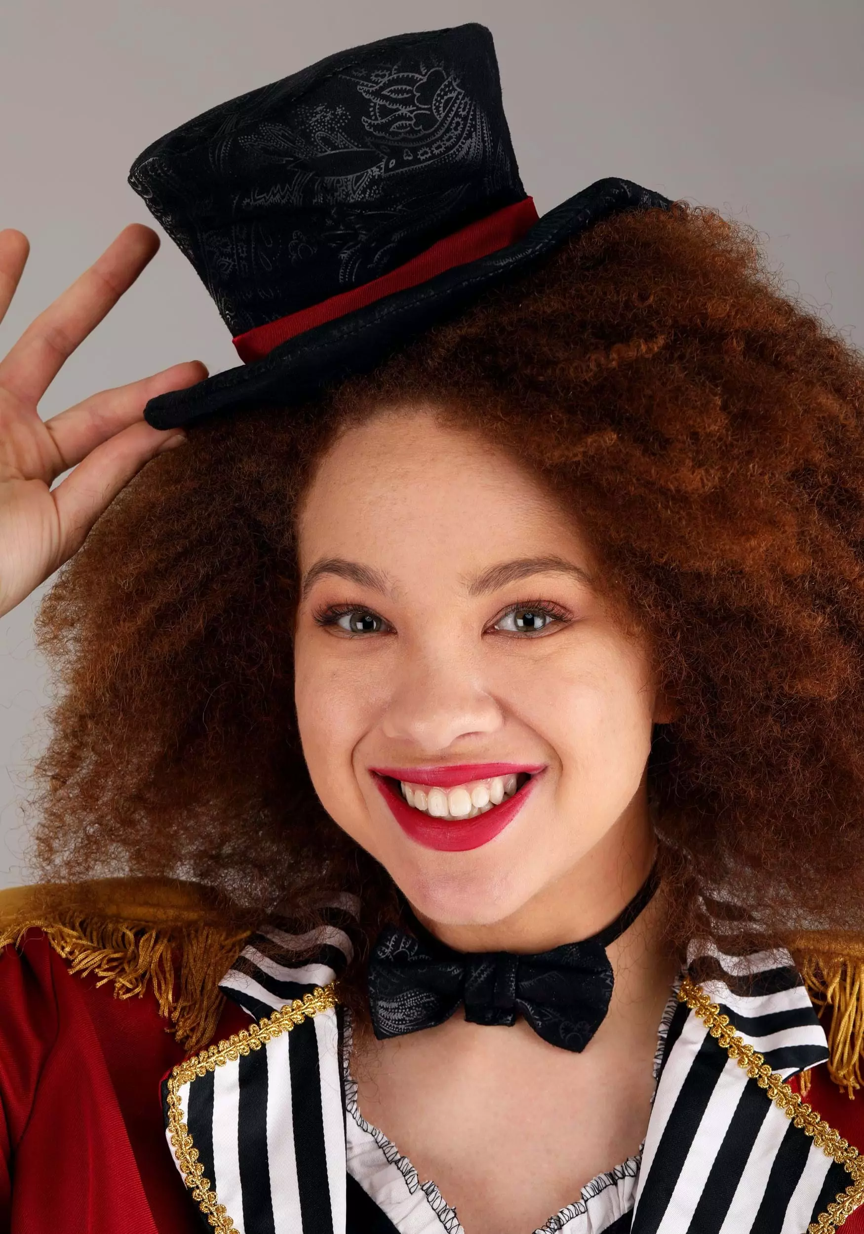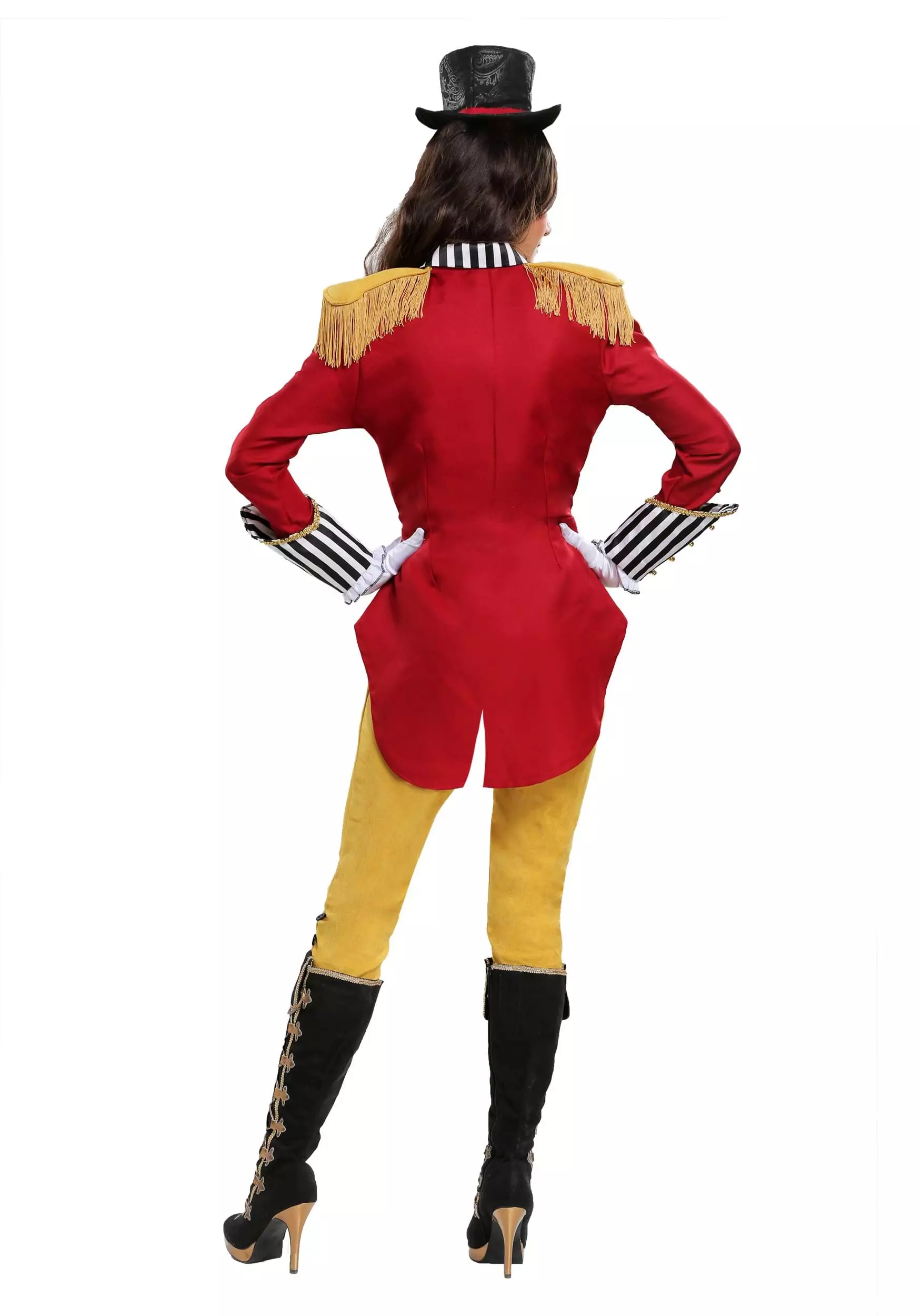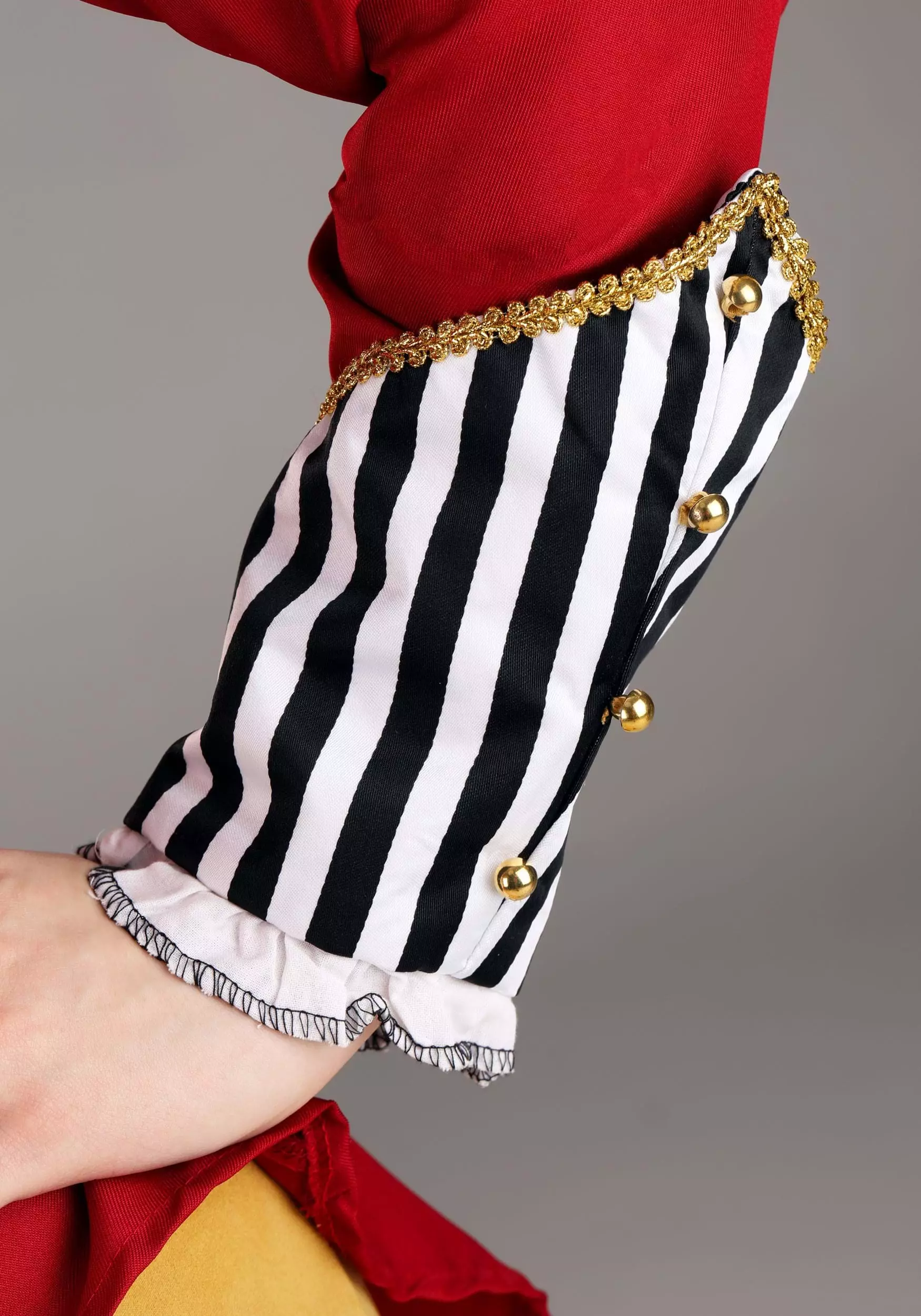 You’ll be ready to start the show in this awesome costume. The fitted red jacket has golden tassels on the shoulders and the dashing striped cuffs studded with gold buttons. Layered under the jacket is a vest with a scrolling pattern, silver buttons, and ruffles around the collar. You’ll love the way the tawny pants pair with knee-high boots, looking timeless with the rest of the ensemble. A small top hat and a black bowtie makes this costume complete. Polish off this look with a whip prop to make sure everyone knows to respect your reign!