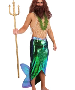 Transform into the mighty merfolk that you were meant for with this Salty Merman costume. This is a Made by Us exclusive designed to shine a little light on the merman in the ocean, too! The costume features a shimmering tail skirt that has a vertical tail fin in the back. Your top is a wide fishnet shirt, the very best of undersea fashion mixed with surface materials! Finish off your look with a seaweed boa and swim your way to Halloween fun.Â