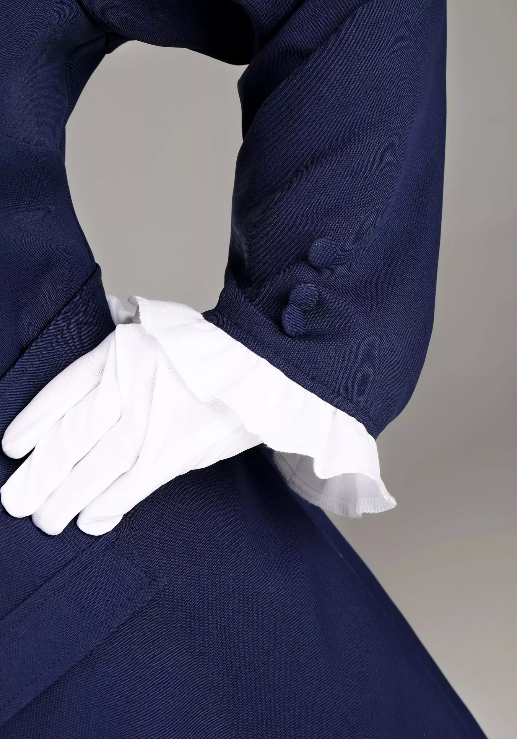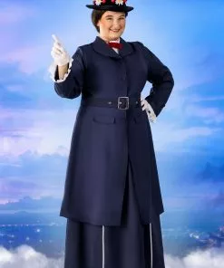 Borrow a little magic from this enchanting nanny with a Plus Size Mary Poppins Costume! The dress is made to look like a white button-down shirt and navy-blue skirt combined. A red bow at the throat adds a pop of color to the top. The matching navy-blue jacket adds a touch of elegance while still allowing the bow to peek through the top, and the belt adds some lovely detail at the waist. And of course, no outfit is complete without gloves and a hat! White gloves and a black hat decorated with flowers and red berries add the finishing touch. When you put on this authentic costume, you’ll be ready for a fabulous adventure with Bert, Jane, and Michael!