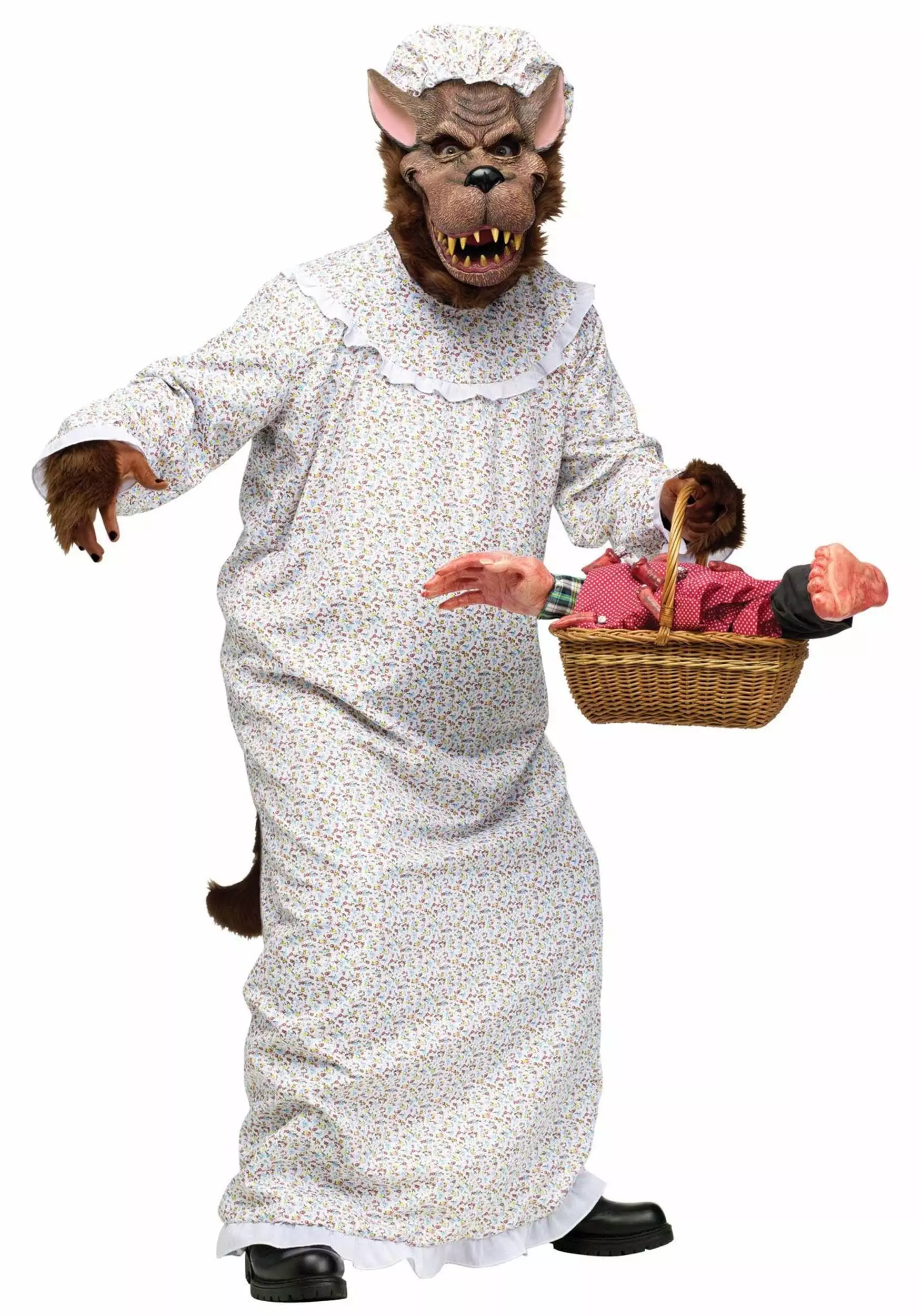 Looking your best as a wolf is pretty easy, but if you’re gonna get those goodies you will need to rock that granny style. This Child Big Bad Granny Wolf Costume is the perfect way to accomplish that. The long floral nightgown has all the ruffles you could ever want. The matching nightcap and sewn-on tail and hand covers work together with the mask to make you look perfect. Just remember your manners when you are wolfing down those goodies!