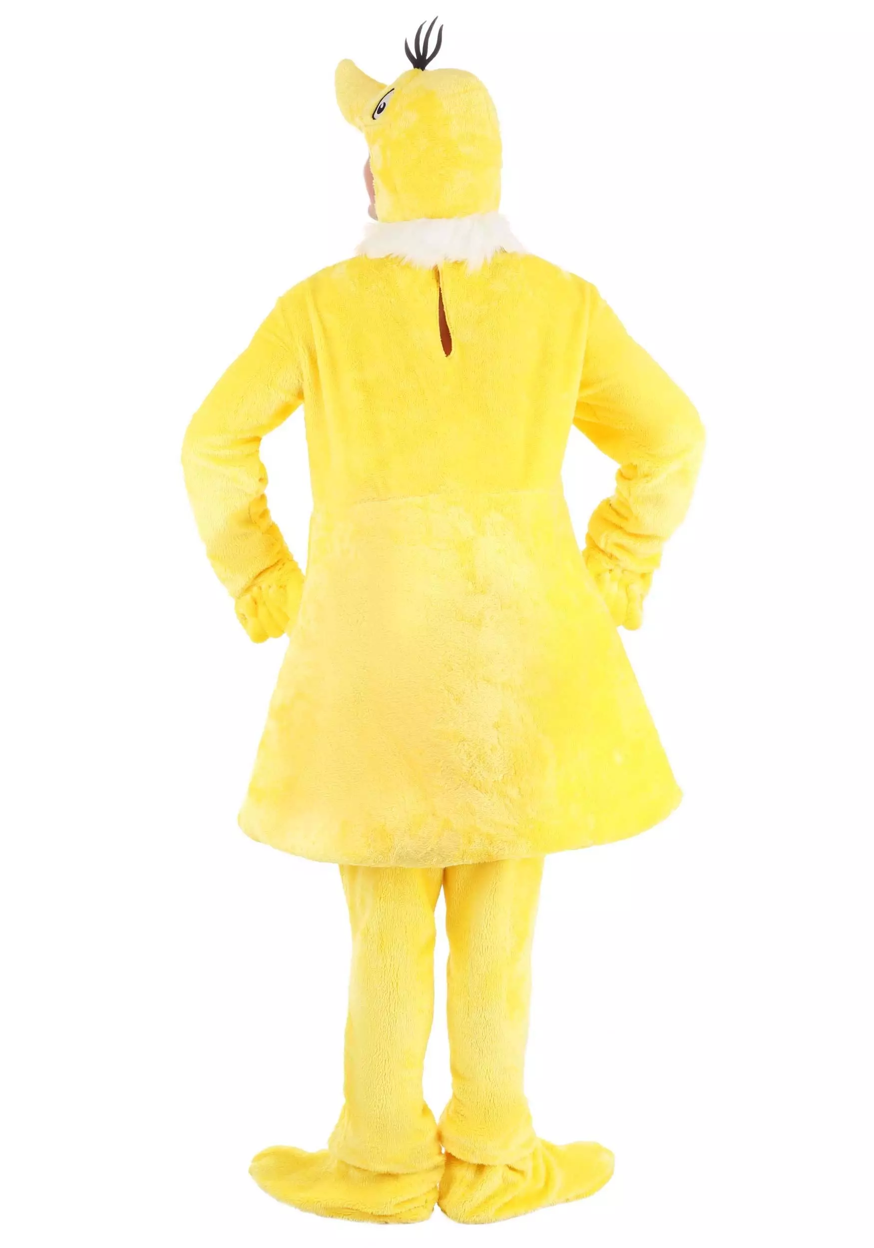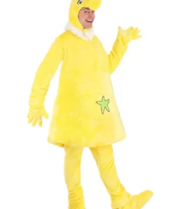 Prove that any kind of Sneetch is the best on the beach when you wear your exclusive, officially licensed Dr. Seuss Star Bellied Sneetch Adult Costume! The unisex outfit includes a long-sleeved tunic that fastens in the back and is made of soft yellow velour. The belly has an appliqued five-pointed green star. The hood fastens beneath the chin and is trimmed with white faux fur. The top of the hood is decorated with eye details and a soft-sculpted snout. Matching yellow mitts, pants, and socks help complete your transformation into a Sneetch.Â
