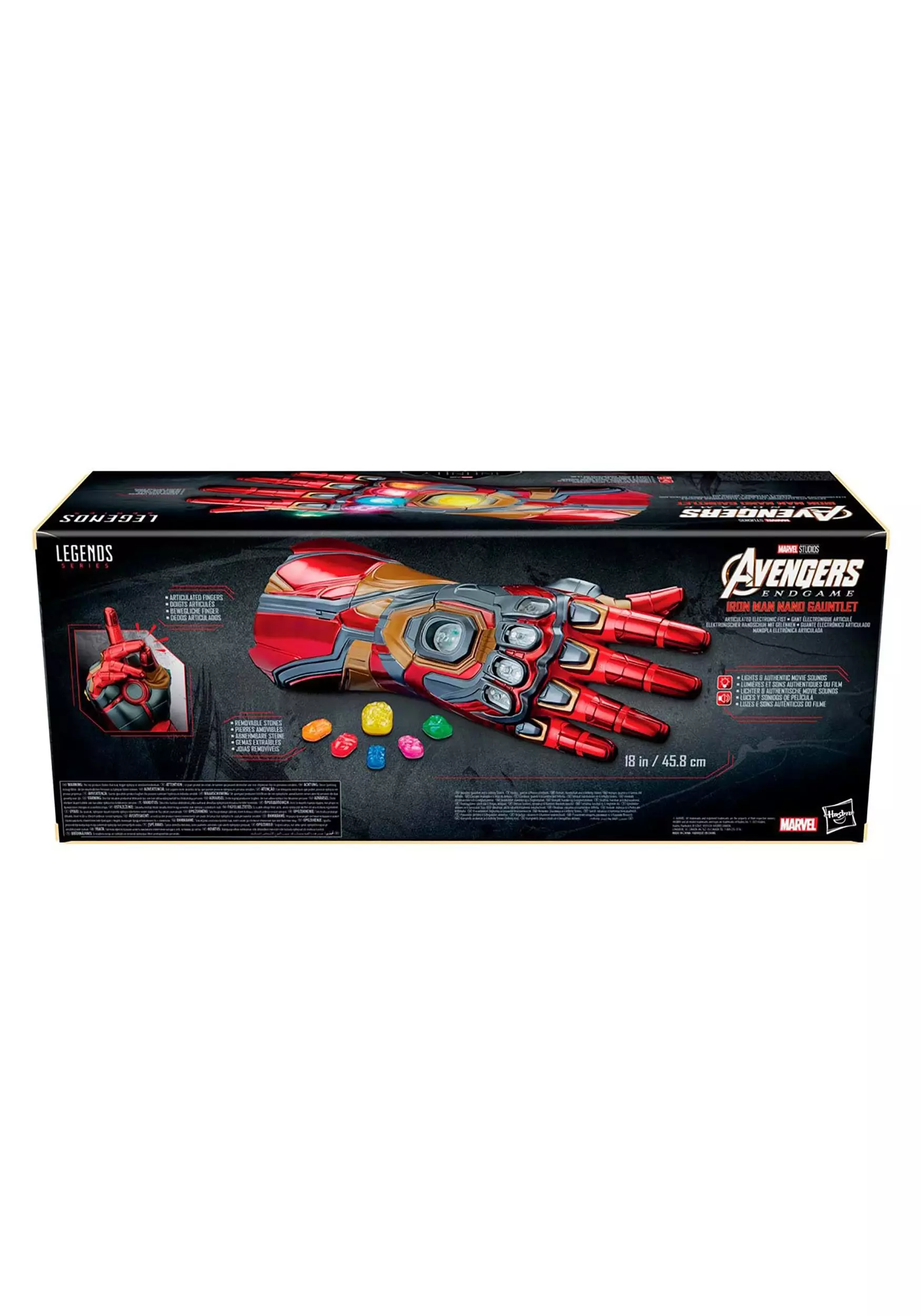 Bring new meaning to the phrase “snappy dresser” when you wear this officially licensed Marvel Legends Avengers: Endgame Iron Man Nano Gauntlet Prop Replica. The molded glove looks like something straight from Tony’s workship and has a light-up Space Stone, Reality Stone, Power Stone, Mind Stone, Time Stone and Soul Stone (powers and batteries not included).Â
