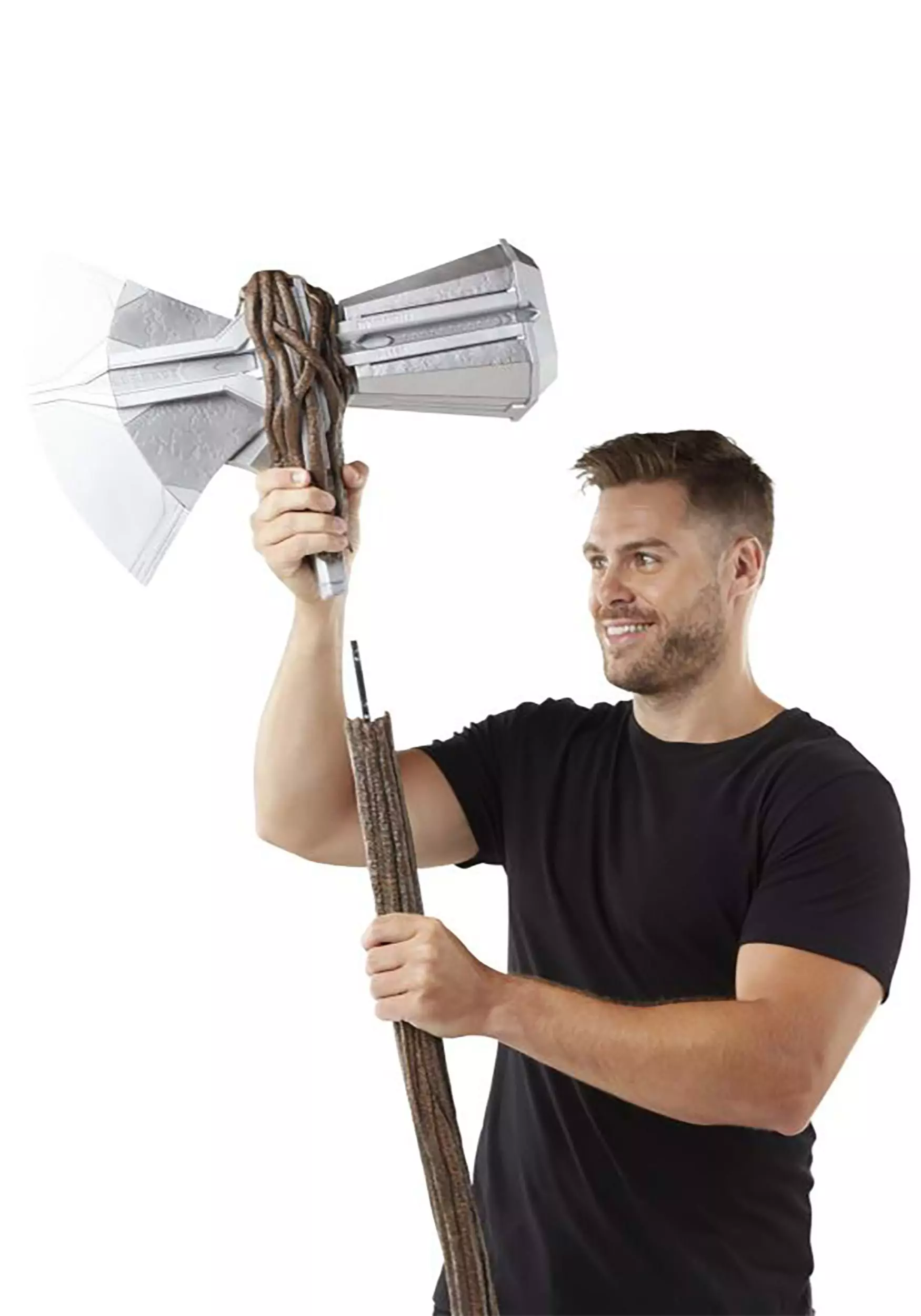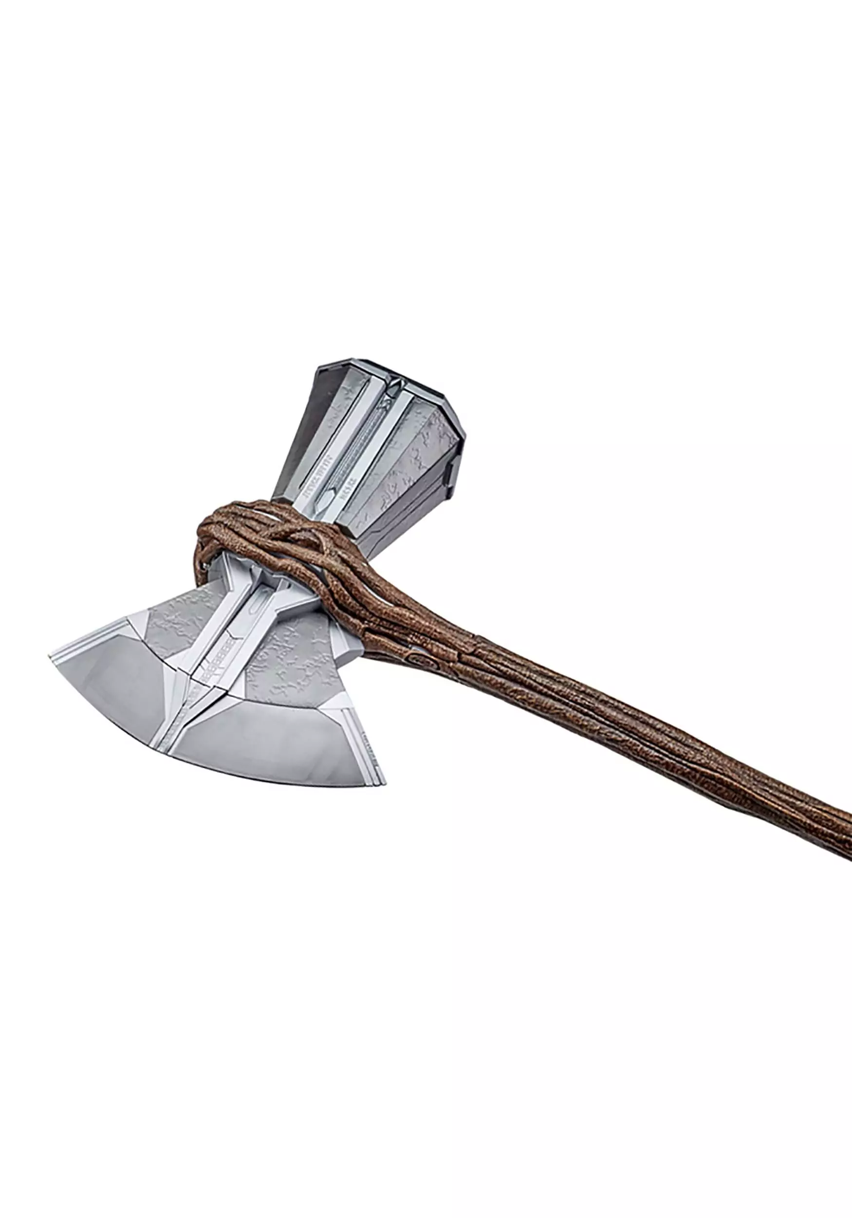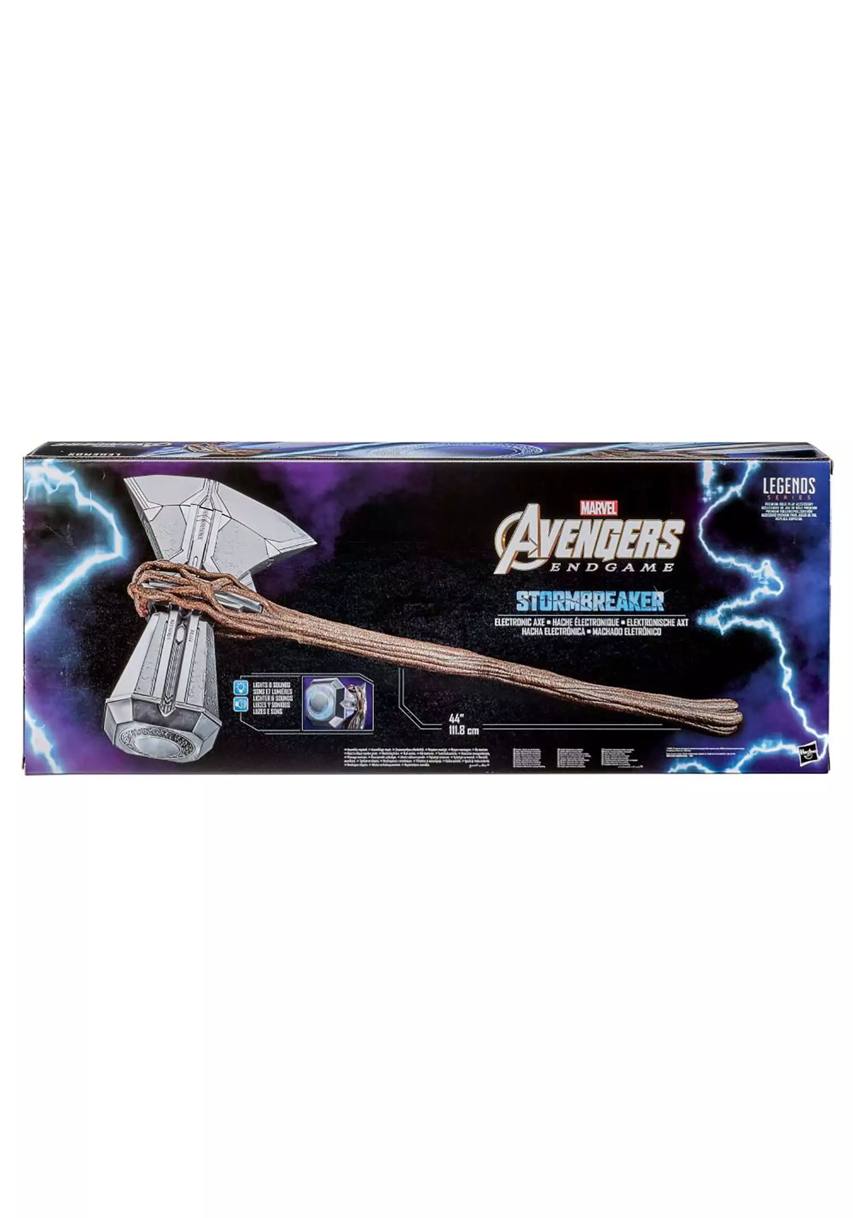 Wield the weapon that legends are made of when you carry this officially licensed Marvel Legends Stormbreaker Replica! Thor’s mighty axe is duplicated in plastic form, the silver-toned blade securely held in place by a faux tree branch donated by Groot. Press the button on the handle to activate the lights and sound effects!Â