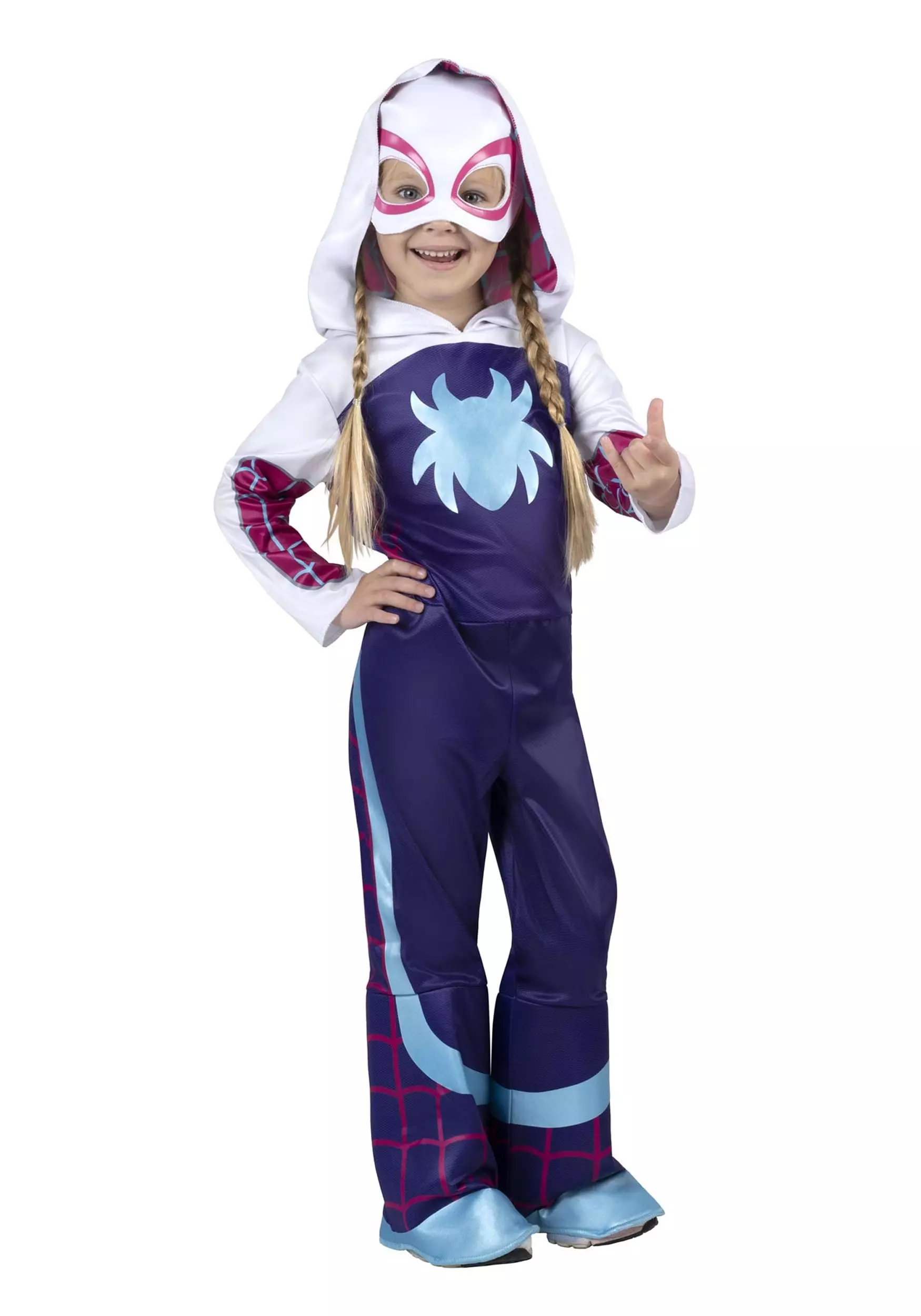 You are in luck if you are looking for an officially licensed Spider-Gwen costume. We know a guy who knows a guy from Earth-65 (she’s the Spider-Man of that reality, FYI). Between the sleek graphics depicting Ghost Spider’s suit, the pink, white, and blue color scheme, and of course, that sweet hood, you’d think we plucked this suit right out of the comics. Show everyone who the most astonishing spider on the block is with this Girl’s Ghost Spider Toddler Costume.