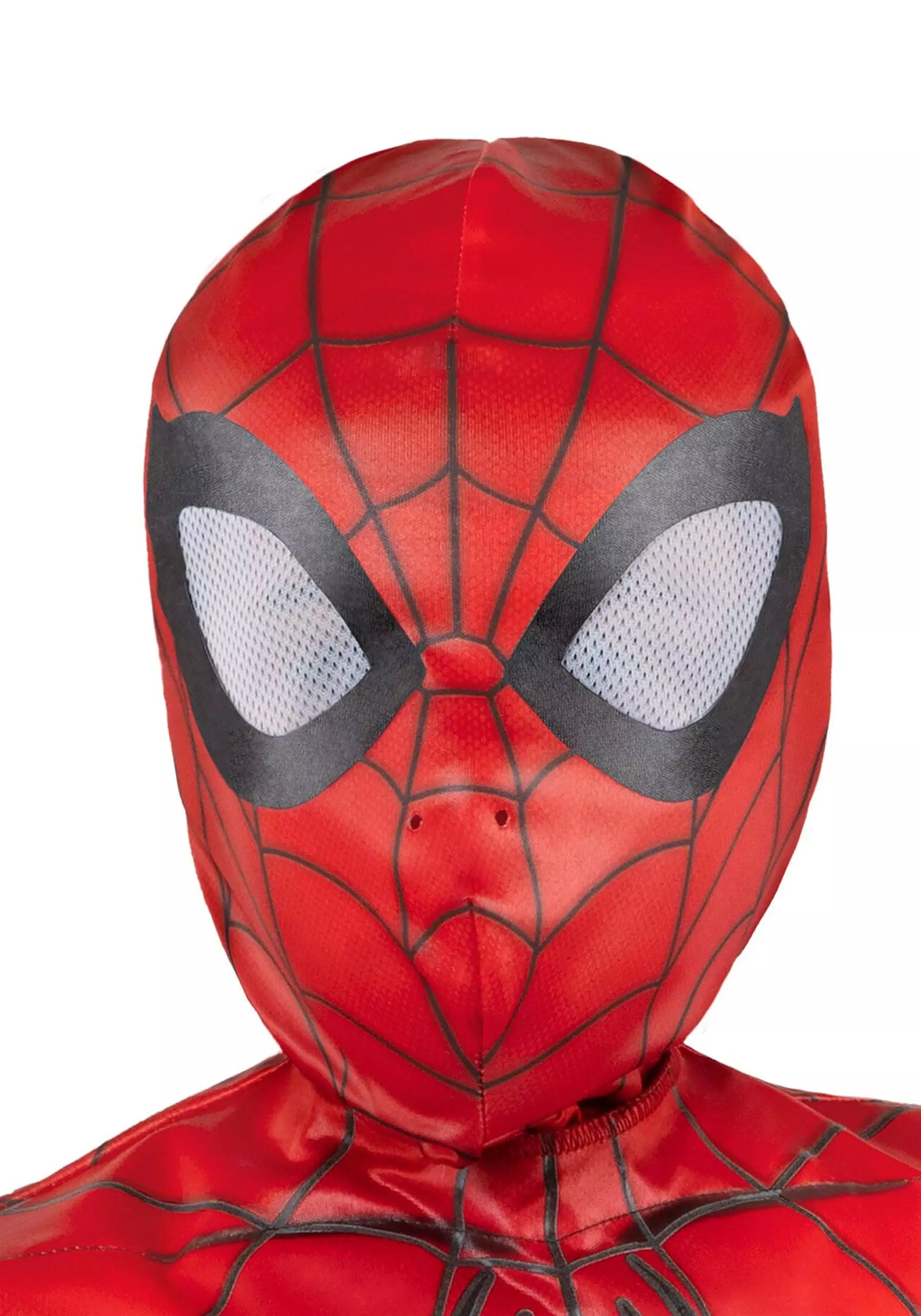 Keep your Peter Parker alter ego safe fron discovery using this officially licensed Spider-Man Fabric Mask for Kids! The soft mask is made of shiny red fabric printed with a spiderweb pattern. It conceals your entire head, and is sewn with black details to outline the mesh viewing ports. Two nose holes allow you to breathe comfortably.Â