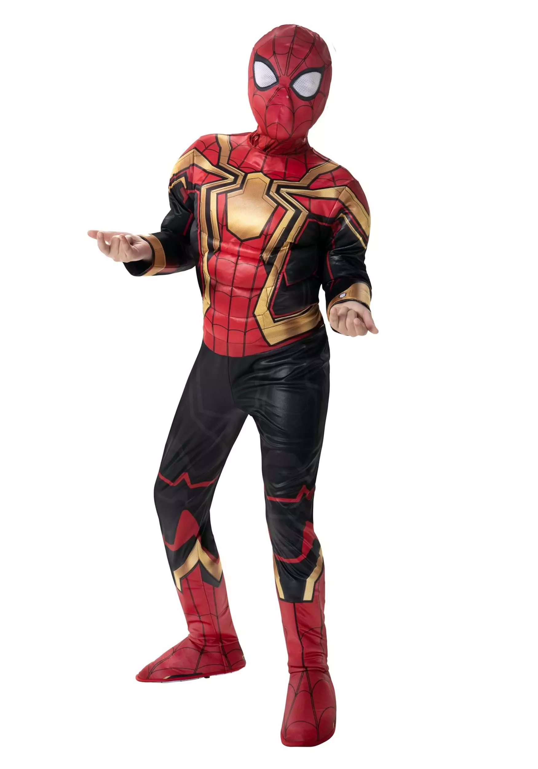 This iconic costume comes straight from the Spider-Man: No Way Home. It comes with a jumpsuit and mask that recreates the nano-tech suit that Peter Parker wears after his encounter with Doctor Octavious, so it has the red, blue, and gold colors seen in the film. The jumpsuit has muscle padding in the chest to help give your child that superhero build, while the printed details give a realistic design that’s perfect for any young hero!