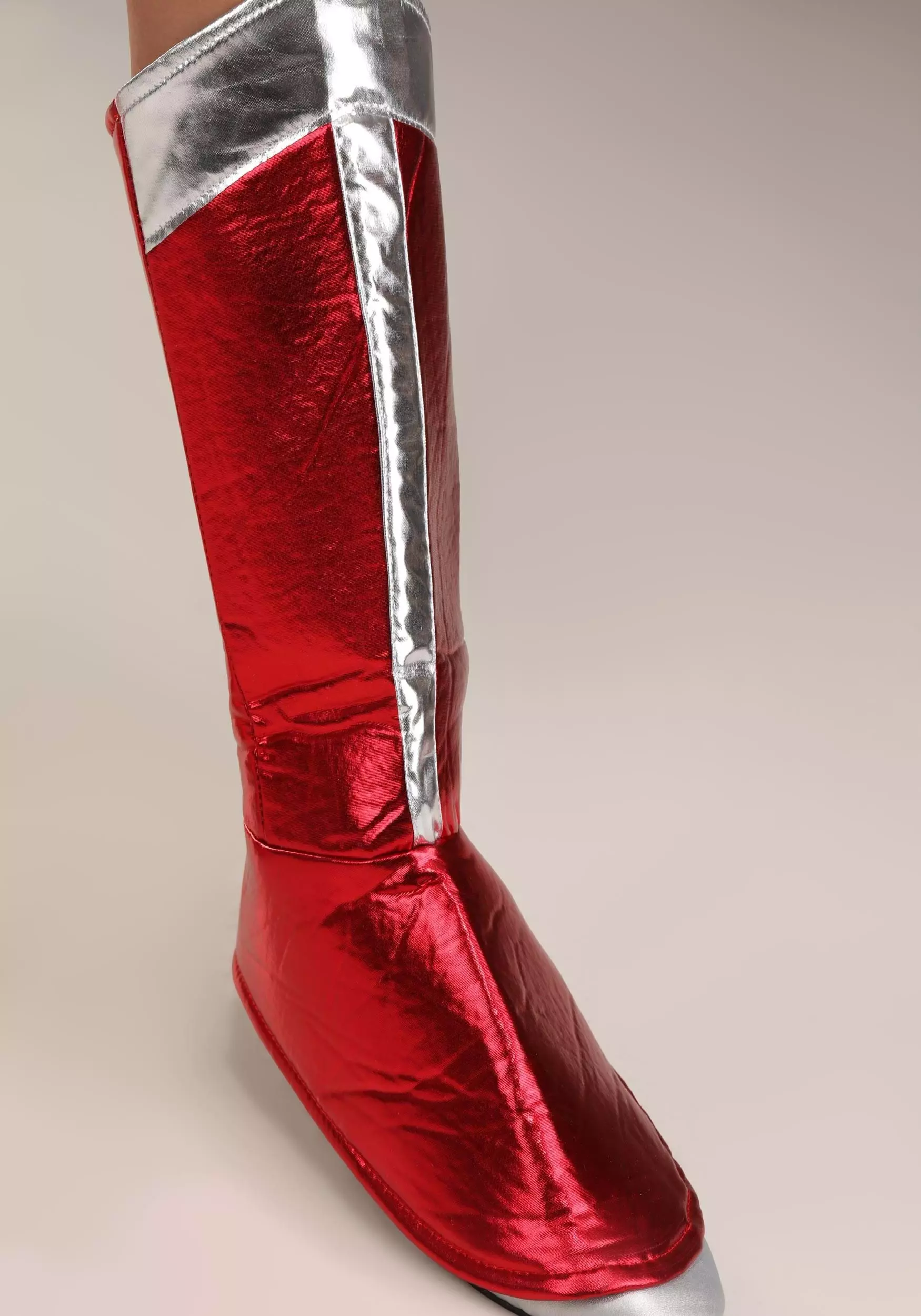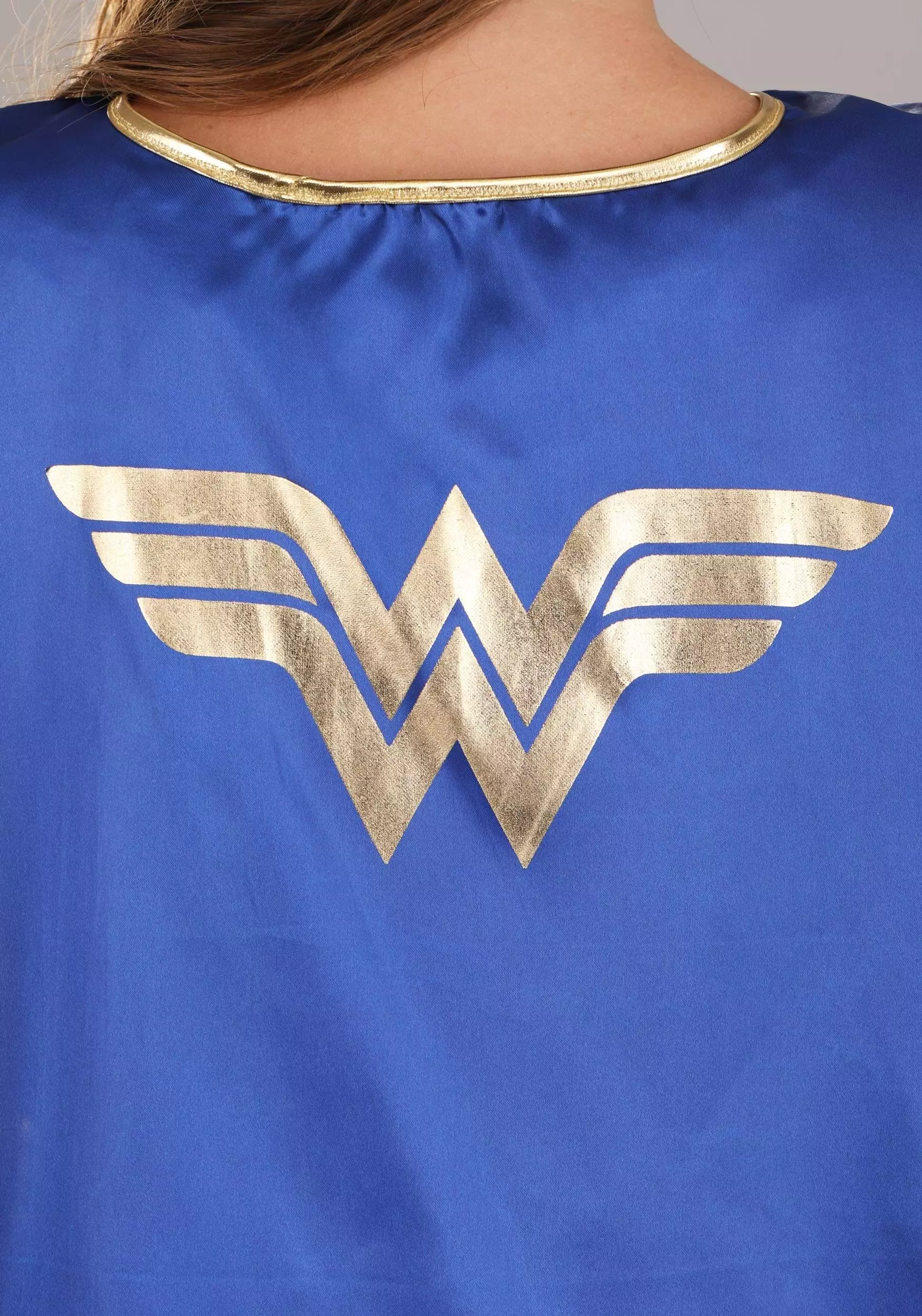 That’s why you’ll be pleased to see that we are offering this Wonder Woman Long-Sleeved Dress costume. This is an exclusive outfit that meets all your Wonder Woman expectations while giving you an upgraded style! The dress features a velour front and shiny cuffs at the end of the long sleeves. The skirt is detailed with metallic stars on a satin blue field. The cape fastens at your neck and has metallic edging to match the elastic tiara! Foam-backed boot covers have you leaping into the fray and feeling heroic, too. The comfy fit of the dress allows for a pair of leggings to be worn underneath to truly take a silver-age comic book look into the modern age. Enemies of the Justice League beware… (and so should the chill of a Halloween night).Â