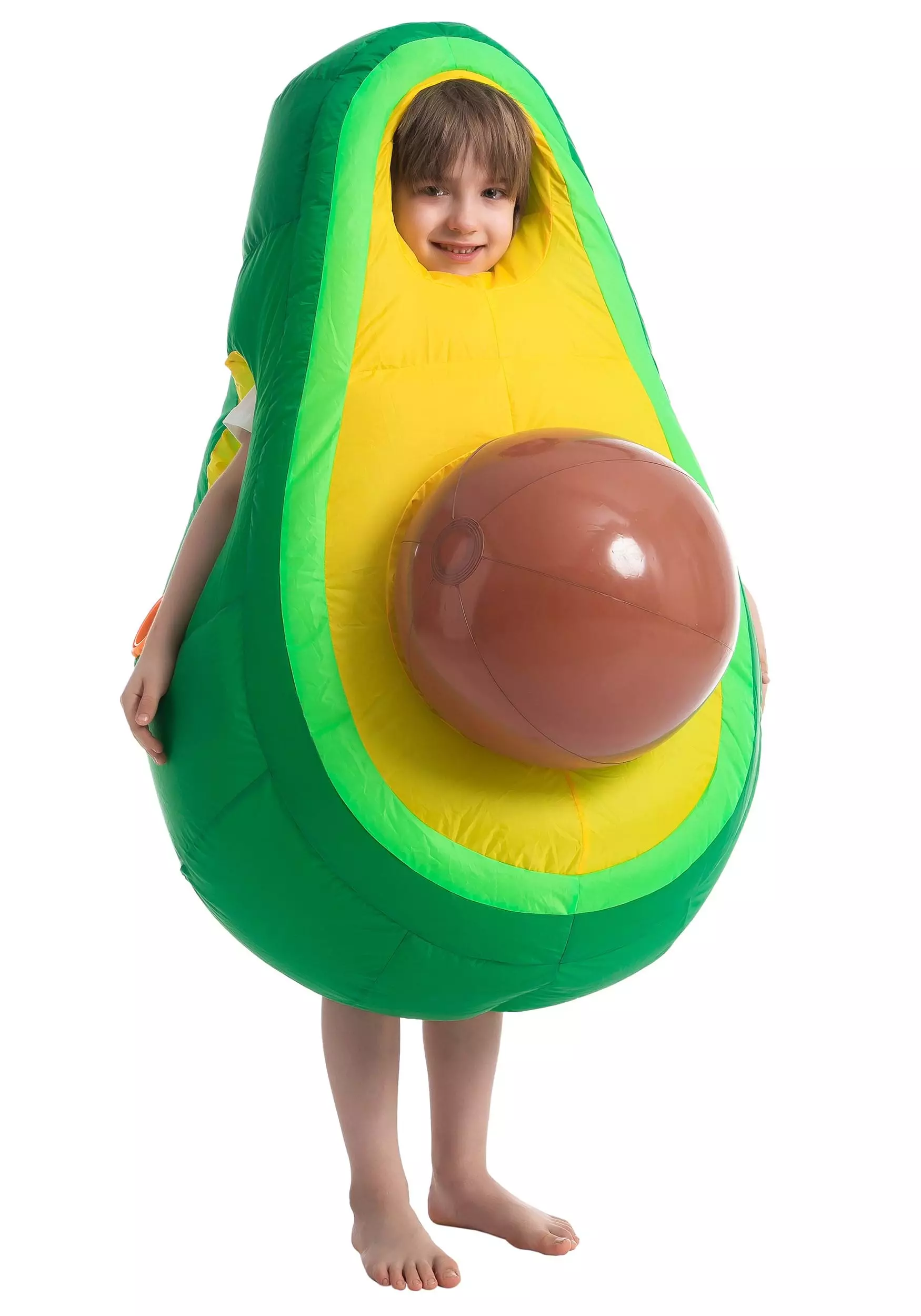 This funny Inflatable Avocado Kid’s Costume will guac your child’s world! When fully inflated, the outfit resembles an avocado half with a dark green back and layers of lighter green and yellow on the front side. It features a roomy hole for your child’s face as well as comfortable arm and leg openings. Best of all, its large, inflated brown “pit” can be removed from the center and used for (gentle) play!Â